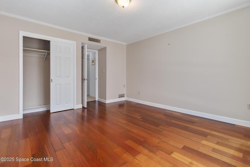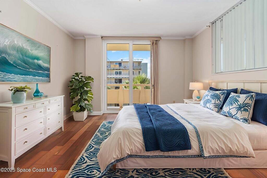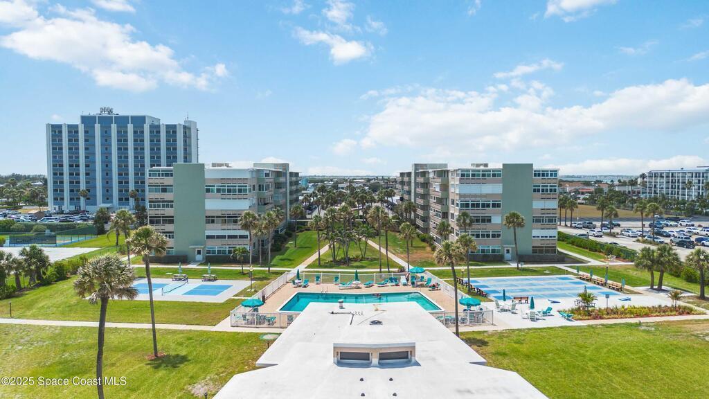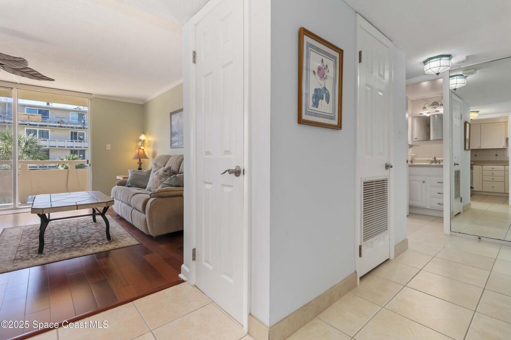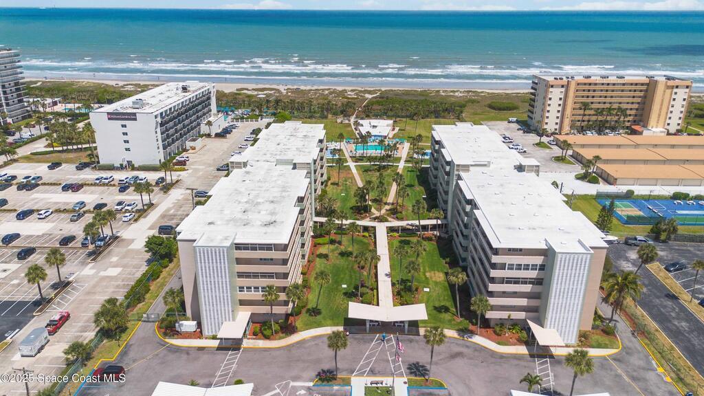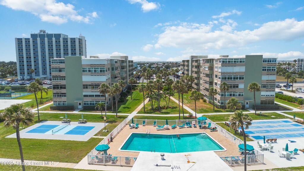 Bright and spacious 1-bedroom corner unit with wraparound balcony offering ocean views and exceptional storage. Open-concept living and dining area filled with natural light. Kitchen features ample cabinetry and a large pantry. Hallway includes utility, linen, and hall closets for added convenience. Spacious bedroom fits a king-sized bed and has its own impact slider to the balcony. Rare full-length private storage closet, perfect for bikes, boards, fishing poles, and more. Additional shared storage near community laundry. Secure lobby, plus access to pool, pickleball, clubhouse, shuffleboard, and private beach access. Located in the heart of Cocoa Beach, just steps from dining, shopping, and entertainment. Perfect for full-time living or a beachside getaway.