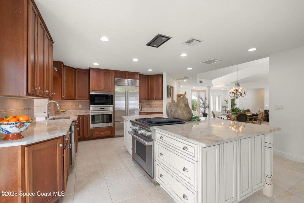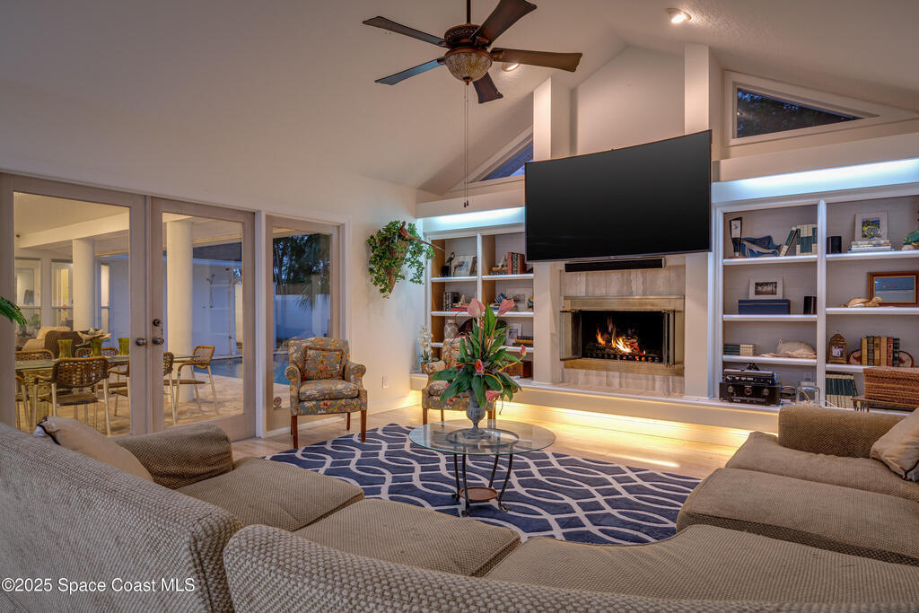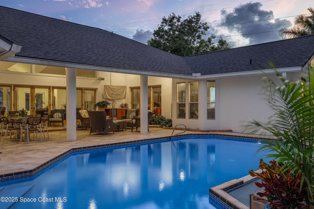 Welcome to beachside luxury living! This concrete block former DiPrima model home sits on an oversized 0.42-acre lot in coveted Rio Villa North. Recently refreshed with new interior and exterior paint, it offers a bright, open floor plan with abundant natural light and thoughtful upgrades throughout. The high-end kitchen boasts quartzite countertops, Sub-Zero/Wolf appliances, a large island, and a butler's pantry.Multiple living areas flow seamlessly to the back patio and pool, complemented by a cozy wood-burning fireplace. Upgrades include a new roof (2023), two new Trane HVAC systems, and a brand-new water softener. The spacious primary suite features a large closet and a spa-like retreat.Outdoors, enjoy a reinforced concrete pad for boat storage and a generous backyard designed for entertaining. Just minutes from Paradise Beach and top dining, this home blends luxury, comfort, and location.Don't miss the chance to own one of the neighborhood's finest homes!