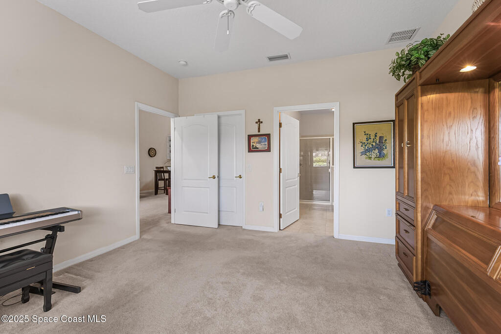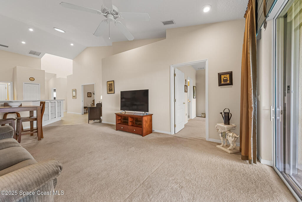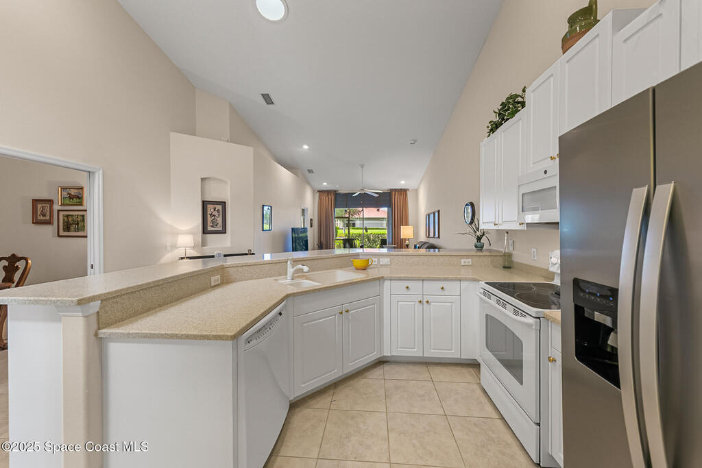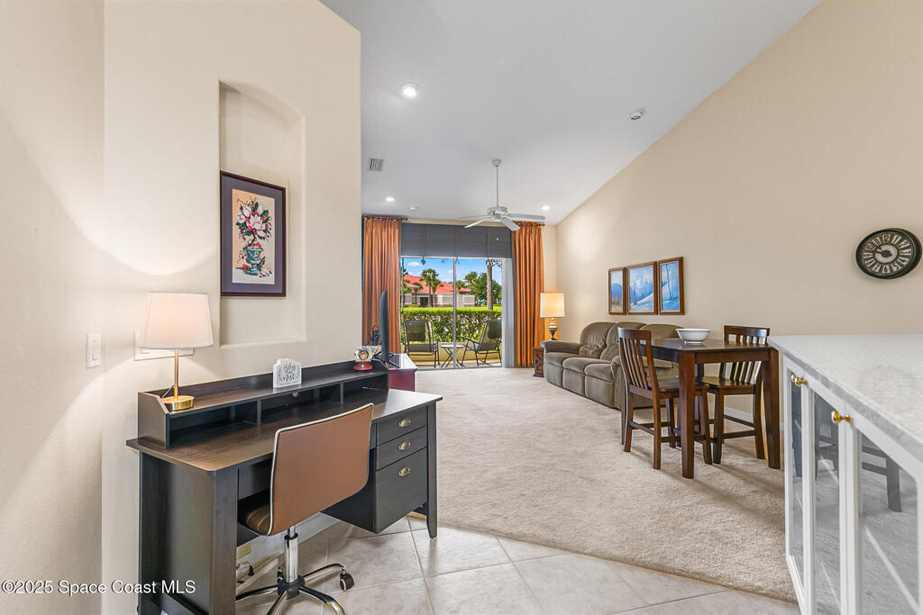 Welcome home to resort style living in Viera's premiere and highly sought after 55+ community Heritage Isle! This 1 story townhome has 2 bedrooms, plus a versatile flex room, 2 baths and a 1 car garage. Use the flex room as an office/craft room/den or formal dining room. Open floorplan and vaulted ceilings offer lots of natural light and adds to the spaciousness of this villa. Modern kitchen has 2 large pantries and built in cabinets under breakfast bar for display and extra storage. Primary bedroom has a very large walk-in closet. All closets are very spacious, even the laundry room has an extra ample storage closet. Relax sitting out on the peaceful screened lanai. Prime location with community pool & amenities steps away! Brand new A/C 2025, Roof 2020, Hot Water Heater 2020, Easy to close accordion shutters for peace of mind. Community features heated pool, clubhouse, fitness center, tennis, pickleball, bocce ball, shuffleboard and horseshoe courts.