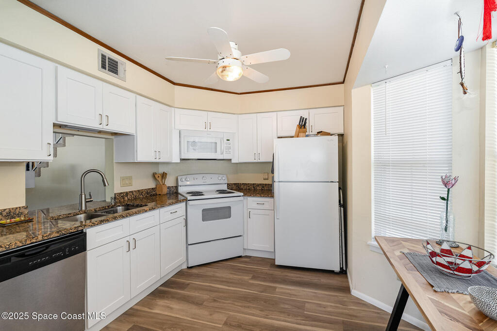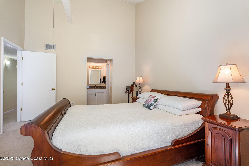 LARGE, lovely, bright and beautifully updated top floor lakefront condo unit with STORAGE GALORE, nestled in an immaculately maintained, tranquil wooded area in Melbourne yet close to all stores and major roadways. 3 large bedrooms with 2 full baths downstairs and a HUGE loft area upstairs with a full bath and closets has endless possibilities. Soaring cathedral ceilings with skylights! Master bedroom and guestroom with walk in closets with the 3rd having a double sized closet. Wall to wall windows and sliders provides endless lakefront views throughout unit. Updated kitchen and baths. Spacious dining area. New flooring. New accordion blinds. all window treatments, light fixtures and washer and dryer stay. Unit also provides a 1 car garage and assigned parking space with plenty of room for guests. Community pool. All for under 240,000!!!!!!!! Come see for yourself. What an incredible buy.