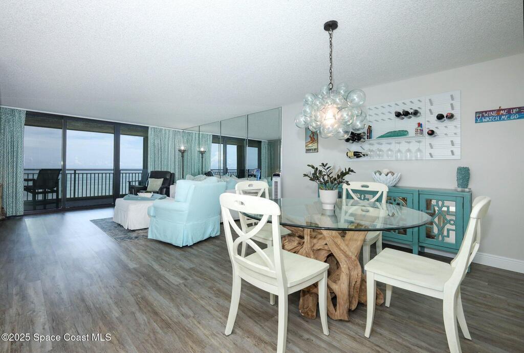 Step inside this thoughtfully remodeled 2-bedroom, 2-bath direct oceanfront condo with a nook/office/flex space, where coastal living meets modern comfort. The open floor plan highlights luxury vinyl plank flooring (2021), fresh interior paint, and a bright, airy design that flows from the welcoming foyer through the dining and living areas. The chef-ready kitchen is positioned with both convenience and style in mind, adjoining a dining room perfect for entertaining. The primary retreat offers a serene escape with sliding glass doors to the balcony, a walk-in closet, and a spa-inspired bath featuring dual sink vanity, soaking tub, and separate shower. A full interior laundry room and ample storage provide everyday practicality, while the second bedroom and bath accommodate family or guests with ease. Open the expansive sets of sliding doors from both the living area and primary suite to step onto your 30-foot-wide balcony.