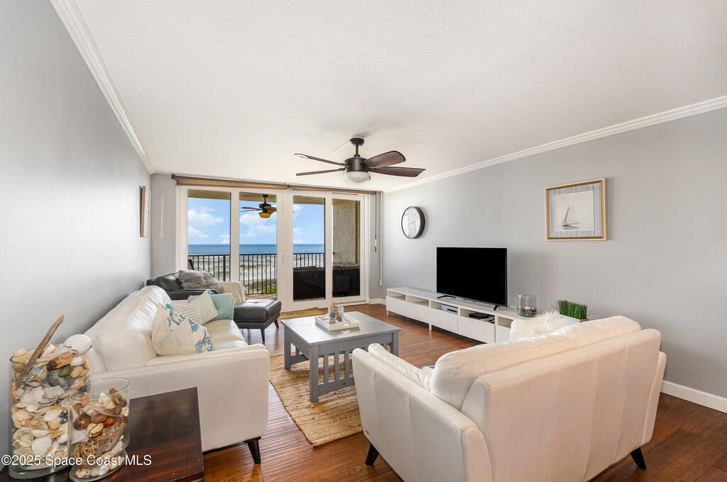 Direct OCEANFRONT condo in South Cocoa Beach with the RARE bonus of river access across the street. This 2BR/2BA unit (sold fully furnished) offers 1,350 SF under air & a remodeled kitchen with quartz countertops, stainless steel appliances, soft-close cabinetry, & recessed lighting. Other upgrades include impact sliders (2019), plantation shutters, a tankless hot water heater, & HVAC (2021). Primary suite features balcony access, dual vanities, a walk-in shower, & two walk-in closets. Enjoy sunrise views from the covered balcony, a heated oceanfront pool & spa, private beach access, & sunsets from the dock. All major pofects completed: concrete & balcony restoration (2019) & pool resurfacing (2023). Extras include garage parking #C21 with storage cage, in-unit laundry, secured lobby/elevators & community room. HOA covers cable, internet, water, sewer & trash. Pet-friendly (2 pets, no weight limit!) & 6-month rental minimum. A perfect coastal retreat for full-time or seasonal living!