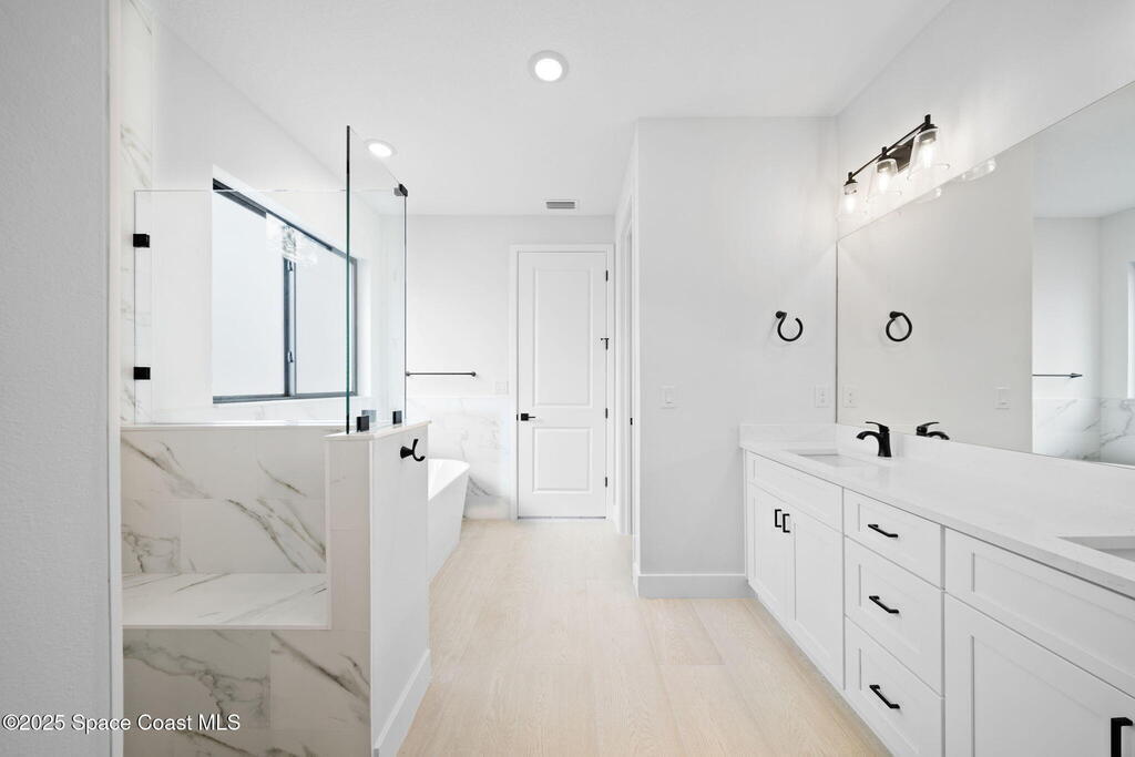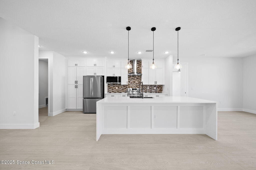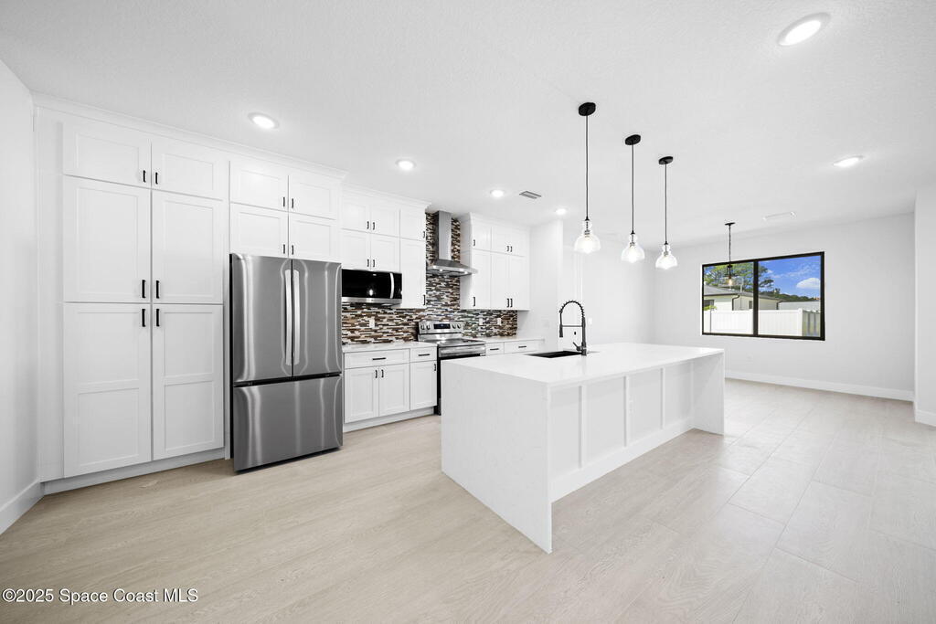*Accepting Back-up offers*Luxurious New Construction with Private Guest Suite! 4BR/3BA showcasing quality at every turn. Enjoy IMPACT windows & doors, wood-look porcelain tile throughout, soaring 9'4'' ceilings, and 8' interior doors. You will fall in love with the kitchen which features a waterfall quartz island, pendant lighting, ceiling-height soft-close cabinetry, pull-out spice rack & hidden trash bin, exterior vented hood and premium LG appliances. The spacious guest suite lives like a second primary with its own entrance, kitchenette, & full bath. The primary suite offers a spa-like retreat with soaking tub, walk-in shower, dual vanities, and large walk-in closet. Entertain in the open living/dining area that flows to a covered patio pre-plumbed for a summer kitchen. Complete with fixtures, smart fans, smart garage door, water treatment system, laundry room w/ sink, and 1-year builder warranty. Photos are virtually staged.