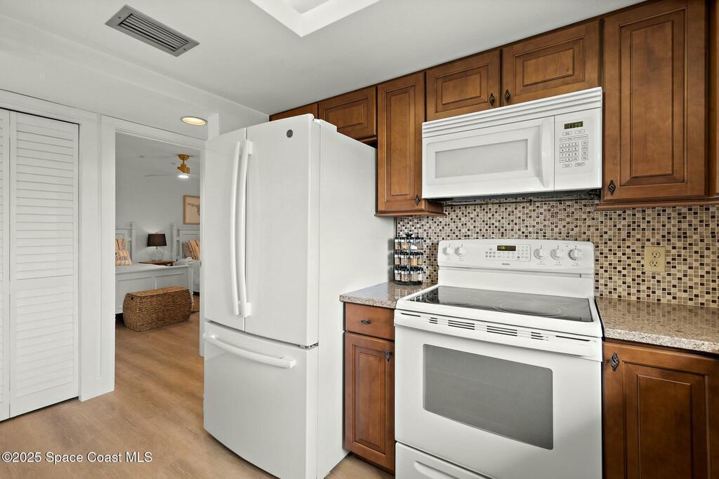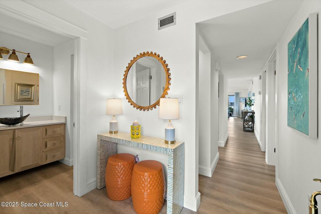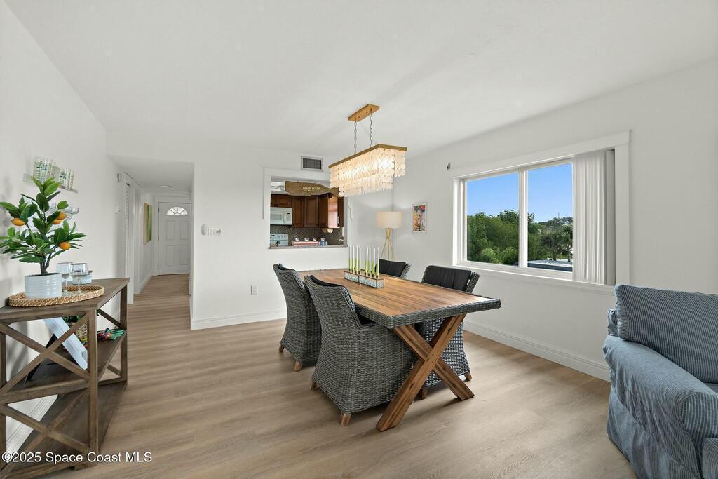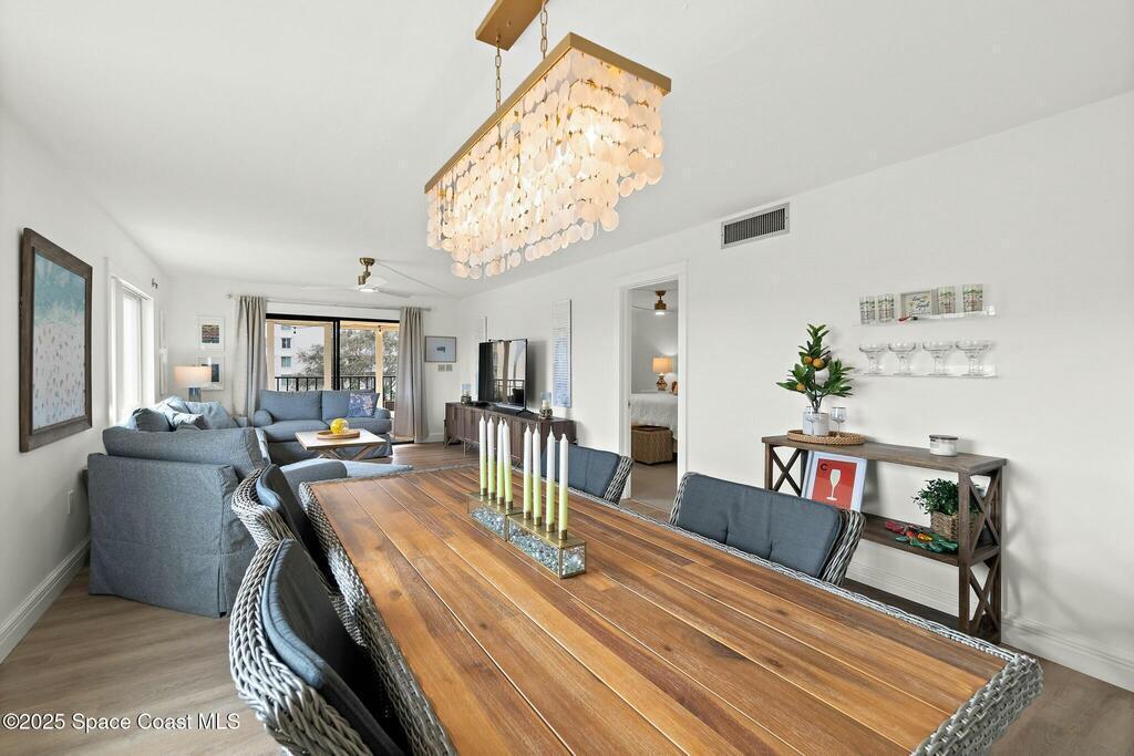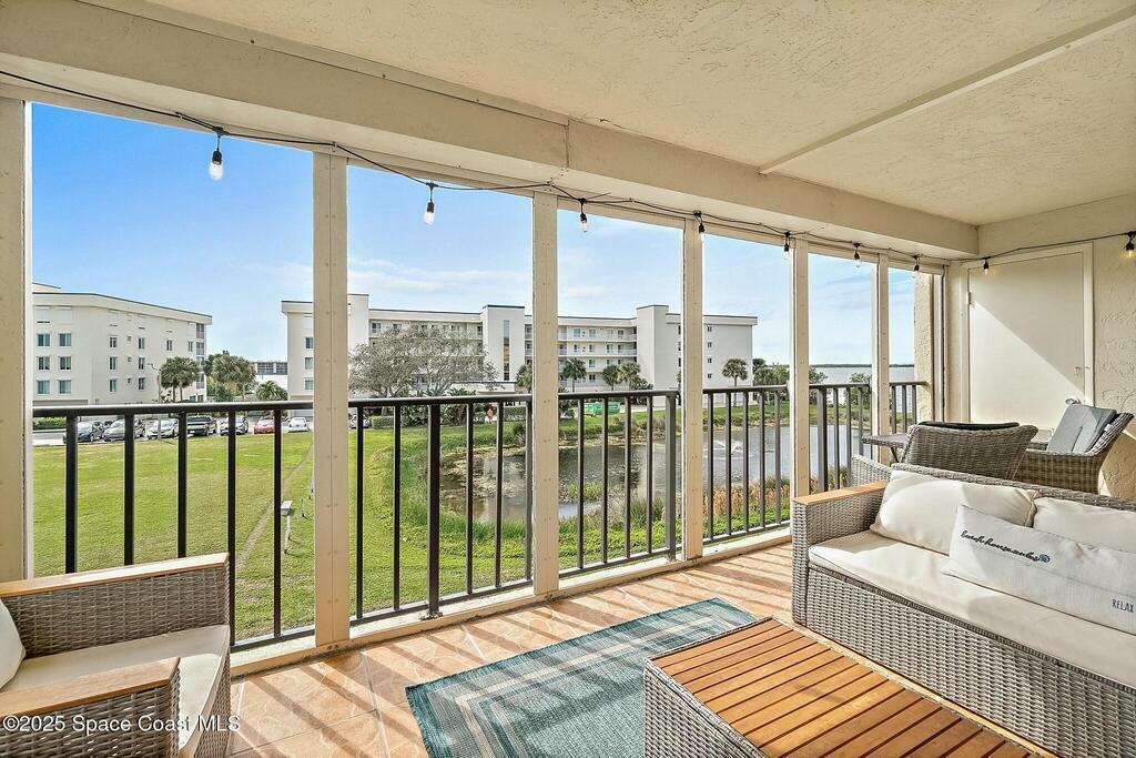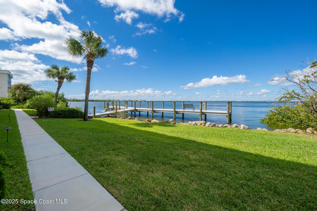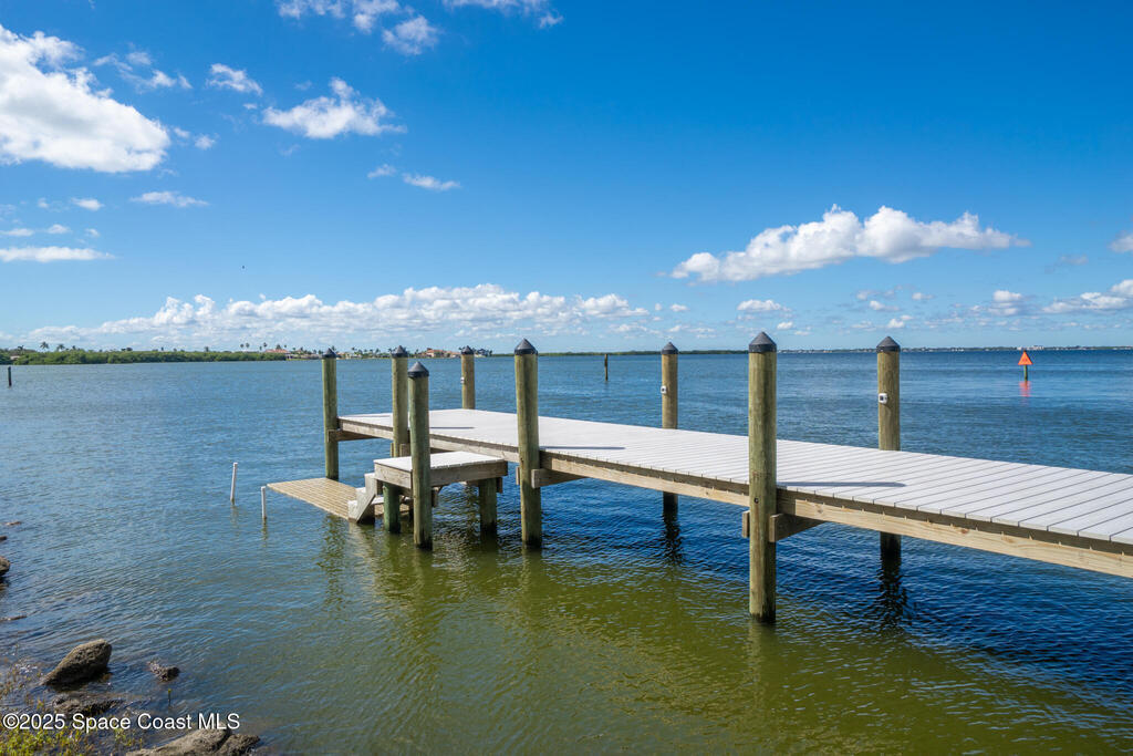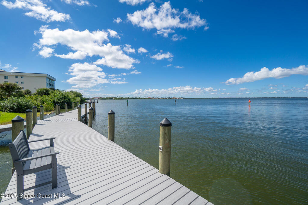 Sleek corner-unit condo blending contemporary flair with easygoing Florida vibes on the Banana River! This freshly revamped retreat offers serene river and pond vistas from a generous balcony--ideal for quiet mornings or taking in beautiful sunsets. Sunlight pours in, accentuating rich luxury vinyl floors, chic tile, and artisanal wood accents. The upgraded granite kitchen shines with soft-close cabinets & handy pantry. Both bedrooms serve as personal havens, each with roomy walk-in closets. The guest suite dazzles with a custom quartz vanity, while the primary suite impresses with dual quartz sinks and a tiled walk-in shower. A trendy updated half bath boosts practicality. The community delivers a shimmering pool and private dock--perfect for casting a line or soaking in the river views. Seize your shot at this stylish treasure in one of Florida's top coastal gems--reach out now to embrace the Cocoa Beach life you've always craved!