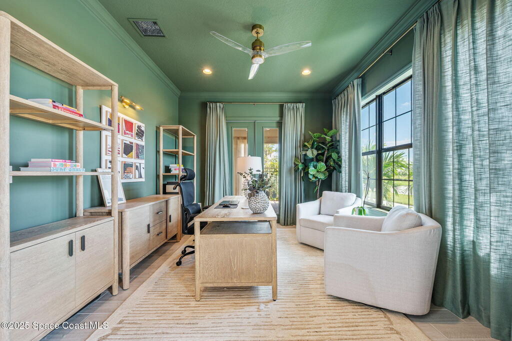 MOTIVATED SELLER ✨ Welcome to 2444 Addison Drive -- Where Luxury Meets Lifestyle! ✨ This 5-bedroom, 5-bathroom masterpiece with a dedicated office in the coveted Addison Village community of Viera redefines modern luxury living. With over $85,000 in upgrades after purchase, no detail has been overlooked. Step inside and be captivated by the open-concept design featuring soaring ceilings with exposed wood beams, an elegant electric fireplace, and a custom beverage bar with wine fridge -- perfect for entertaining. The chef's kitchen is a showstopper with quartz countertops and a dramatic waterfall island, gas range with pot filler, farmhouse sink, large walk-in pantry, and eat-in dining area. The master suite is privately tucked on the main floor, offering dual closets including a massive walk-in, dual vanities, and a spa-like walk-in shower. Upstairs, two separate staircases lead to private guest retreats, including a Jack-and-Jill bathroom connecting two spacious bedrooms.
