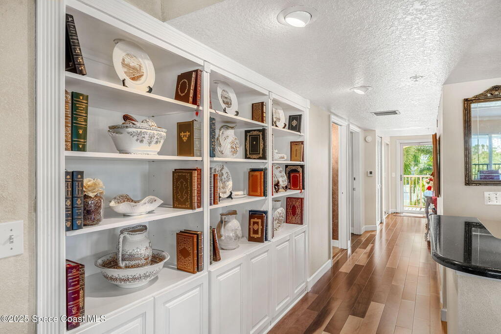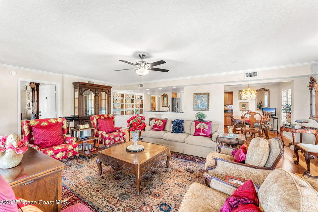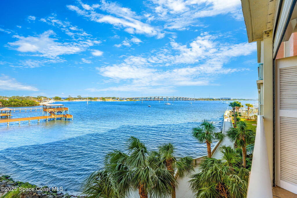 Experience resort-style living in this stunning 3BR/3BA end unit with panoramic water views and front-row seats to rocket launches, Fireworks, and Boat parades. Elegant details include hardwood floors, a custom-built-in bookcase, crown molding, plantation shutters & a built-in speaker system. The updated kitchen showcases custom cabinetry, granite counters & an island with a breakfast bar--perfect for entertaining. Relax in your spacious primary suite with a spa-like bath featuring dual vanities, a jetted tub & a separate walk-in shower. Two balconies with electric roll-down shutters invite you to soak in breathtaking views! Enjoy the convenience of a large, climate-controlled private storage unit, secure garage parking, slips available & endless amenities--pool, spa, boat sauna, gym, clubhouse, tennis, pickleball & more! Walk to Cocoa Village festivals, concerts & dining--or drive minutes to world-famous Cocoa Beach. Live where every day feels like a vacation!