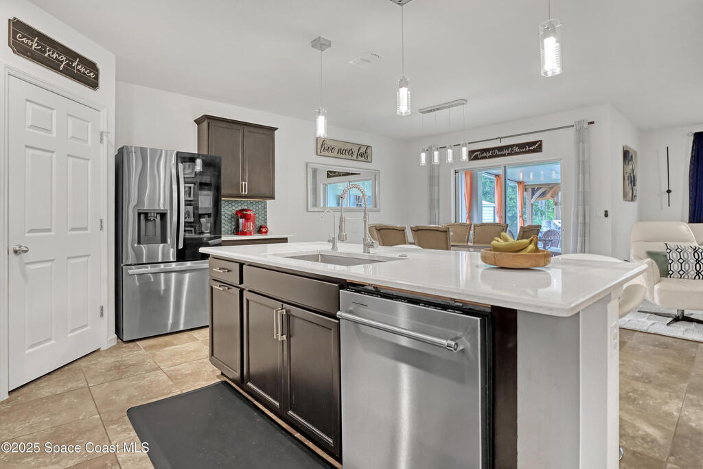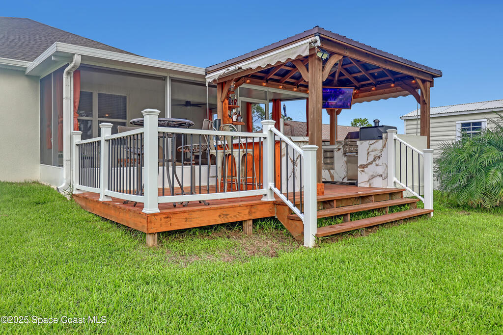 PRICED REDUCED! This beautifully upgraded 4-bedroom, 2-bath home has been meticulously maintained and is packed with premium features inside and out. Step inside to find luxury flooring throughout--no carpet--along with elegant quartz countertops, high-end appliances, a full security system, and custom interior and exterior lighting. The garage boasts an epoxy-coated floor, while the widened driveway with decorative pillars adds extra curb appeal. The freshly painted exterior and full gutter system provide lasting peace of mind. Out back, enjoy your extended screened-in patio with a custom pergola, outdoor BBQ kitchen, built-in bar, and kegerator--perfect for entertaining. The fully fenced backyard includes a spacious shed on a concrete slab. Quiet neighborhood with wonderful neighbors and just 1 mile from primary shopping and entertainment, this turn-key property blends comfort, function, and style. Don't miss this opportunity to own this move in ready home! (NO SIGN IN FRONT)
