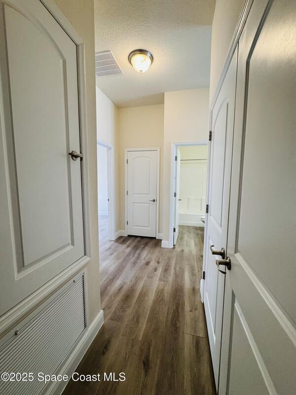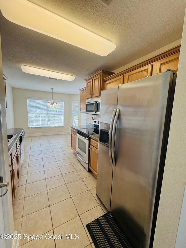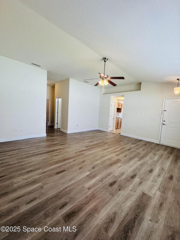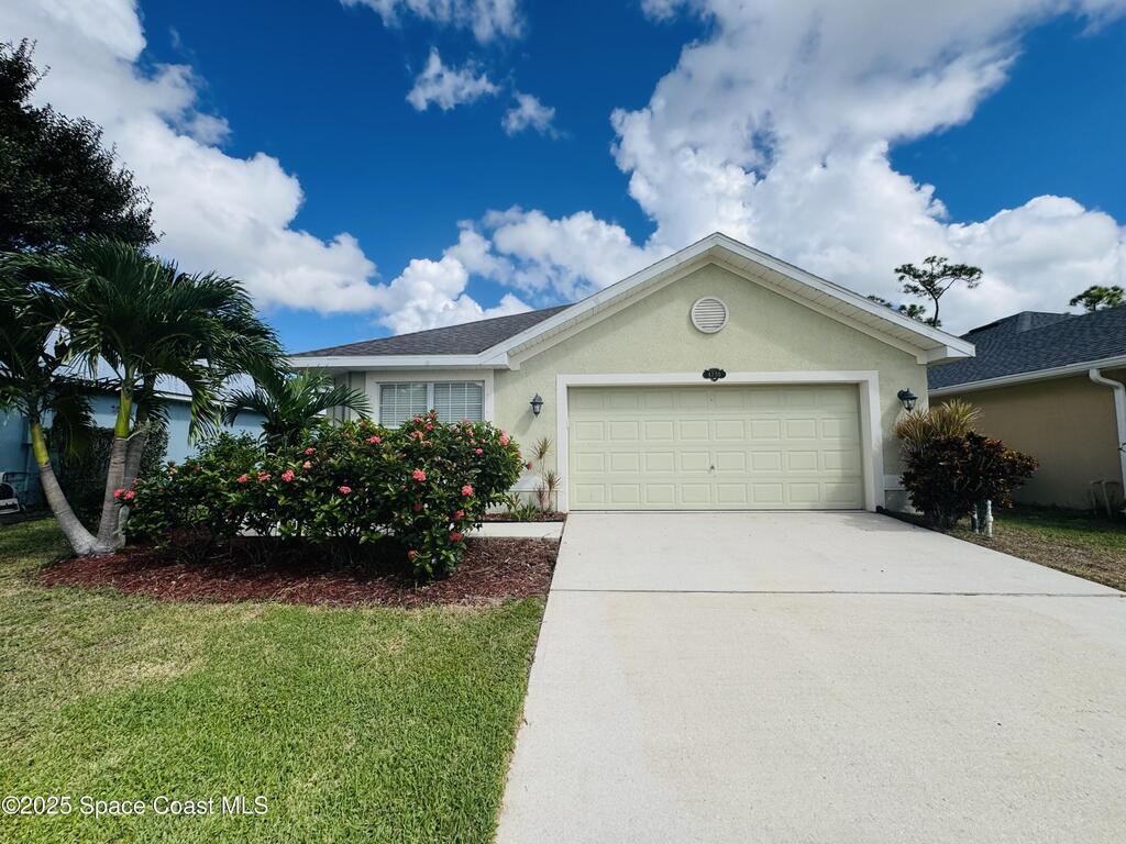 BRAND NEW ROOF Nov 2025 & Wind Mitigation- Move-In Ready Home in a Quiet Gated Community. This beautifully maintained home features an open floor plan with elegant flooring throughout. The family room boasts vaulted ceilings and a plant ledge for added charm, while the bright kitchen includes a breakfast nook, new refrigerator, microwave, faucet, and garbage disposal. The spacious master suite offers a walk-in closet and a new bathroom toilet. Additional conveniences include above-garage storage, storm shutters, and a freshly power-washed entrance. Enjoy the screened patio and inviting lanai overlooking a fenced backyard--perfect for privacy and family living. Recent updates include a new AC, upgraded water heater, and modernized sprinkler system. Ideally located near top schools, minutes from the beach, airport, I-95, major employers, and within walking distance to the community pool.