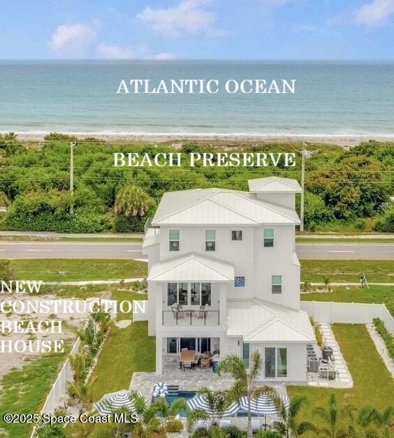 Beautiful NEW Construction POOL Home with BEACH VIEW! Ultimate Coastal Retreat. Step into the epitome of LUXURY living with this extraordinary BRAND NEW home just steps from the BEACH. This beautiful home boasts unobstructed ocean views, contemporary design, and luxurious amenities: perfect blend of sophistication & coastal charm. Designed for relaxation and entertaining, this three-level estate offers 5 spacious bedrooms, 4 elegant bathrooms, and a seamless blend of contemporary style and high-end finishes. The open-concept second floor features a state-of-the-art kitchen with custom cabinetry, Bosch appliances, and a large center island, flows effortlessly into the ocean-view great room and dining area. Covered patio overlooks the pool & spa extends the living space outdoors, complete with a summer kitchen. Third floor is home to the primary suite, where a private sun deck showcases panoramic ocean vistas. Beach preserve directly across the street. Click for more....