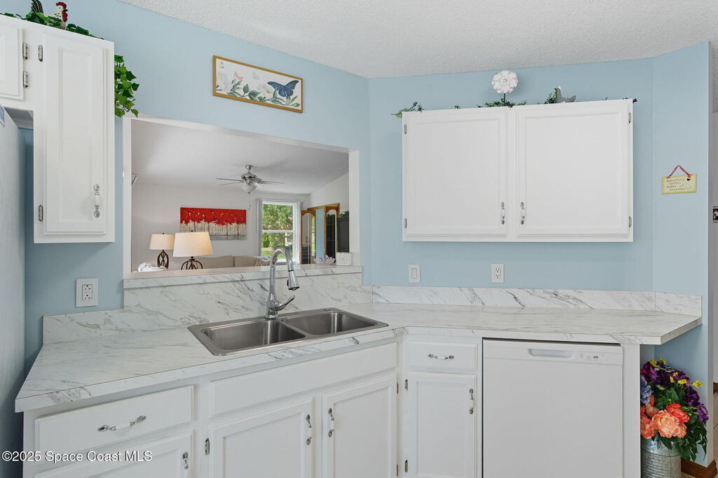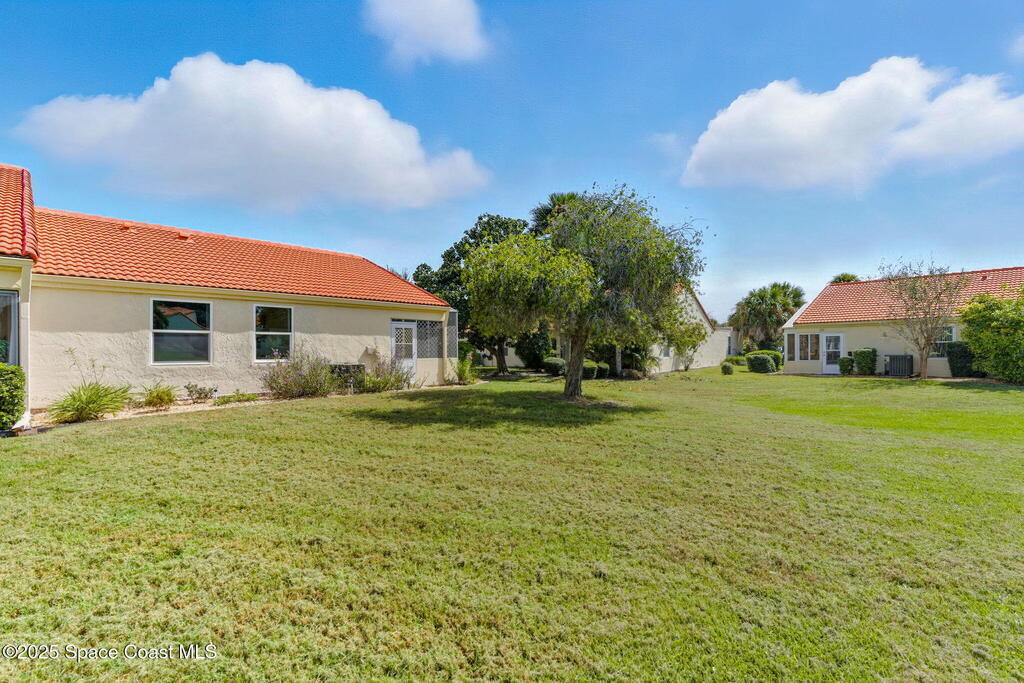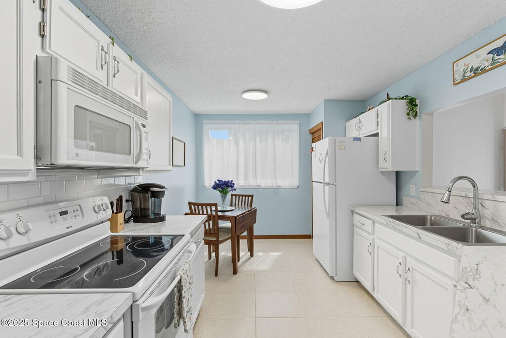Great opportunity for this villa-style 3-bedroom townhome in Suntree--only $315,000! Move-in ready with neutral palette, this home offers new storm windows and a refreshed kitchen with updated counters, subway tile backsplash, pantry, and sunny eat-in nook. The spacious primary suite (approx. 15'x12') features a fully remodeled bath with double sinks, quartz countertops, upgraded cabinetry with pull-outs, and a stunning updated walk-in shower. Skylight and dual corner closets add style and function. Light-filled living areas open with two sets of sliders to a covered porch overlooking community green space. Flexible 3rd bedroom can serve as a den or office. Additional highlights: vaulted ceilings, lush landscaping with stone beds, private courtyard with storage, 1-car garage plus 2 dedicated parking spaces. Very short stroll to the community amenities featuring tennis and pickleball courns as well as a pool.