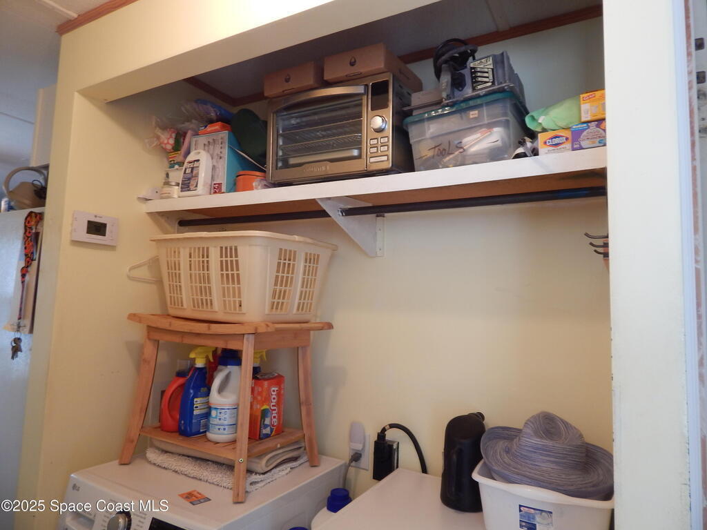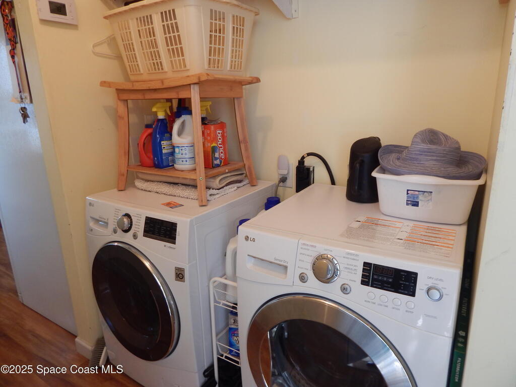 This charming and winsome 1-bedroom, 1-bathroom home in Palm Bay Estates is move-in ready. Located in a waterfront community for residents aged 55 and over, the home has been updated with modern appliances, including a dishwasher. It features laminate flooring throughout, with tile in the bathroom for easy maintenance. A washer and dryer are also included for your convenience.The property includes a two-car carport on one side, while the other side offers added privacy with no neighboring homes. Behind the screened-in patio, there is a storage shed. Additionally, a second patio area can be screened in due to a roof extension, providing a lovely view of the canal.Currently, the HOA fees are $190 per month and are scheduled to increase to $200 on January 1st. Palm Bay Estates offers amenities such as boat storage, RV parking, and kayak racks (subject to availability), all for an additional fee.