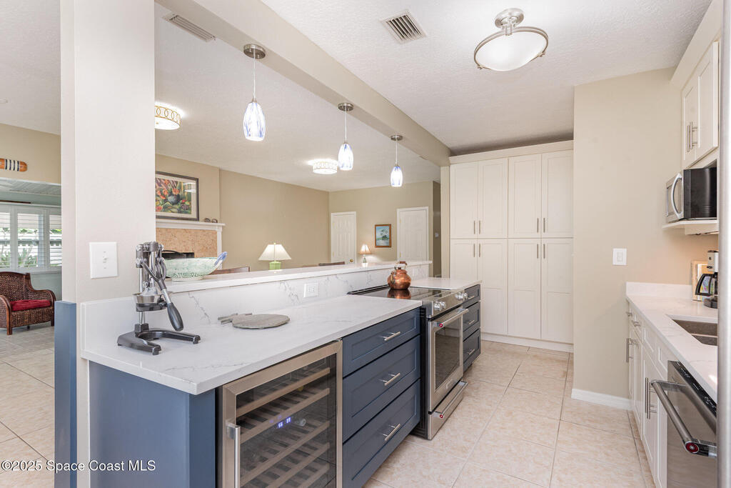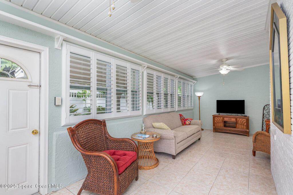 This beautiful 3-bedroom, 2-bathroom home in the historic Rockledge District is a stunning blend of classic charm and modern updates. The property has been meticulously maintained and recently upgraded, offering a truly turn-key experience. Inside, you'll find a light-filled, open space with 8'6'' ceilings. The custom-designed kitchen is a highlight, featuring new KitchenAid appliances, soft-pull cabinetry, and elegant Cambria quartz countertops. It also includes a built-in, two-zone wine refrigerator, perfect for entertaining. This home's infrastructure has been completely updated for peace of mind, with newer plumbing, electrical, and HVAC systems. The double-membrane metal roof, double-paned windows, and hurricane accordion shutters on all windows provide excellent storm protection, complemented by a whole-house Generac generator. The interior features fresh paint, luxury vinyl plank and tile flooring, and quality window treatments throughout.