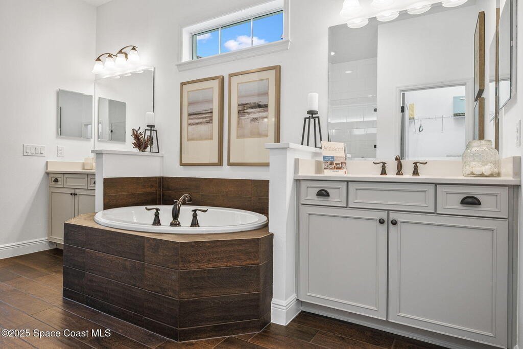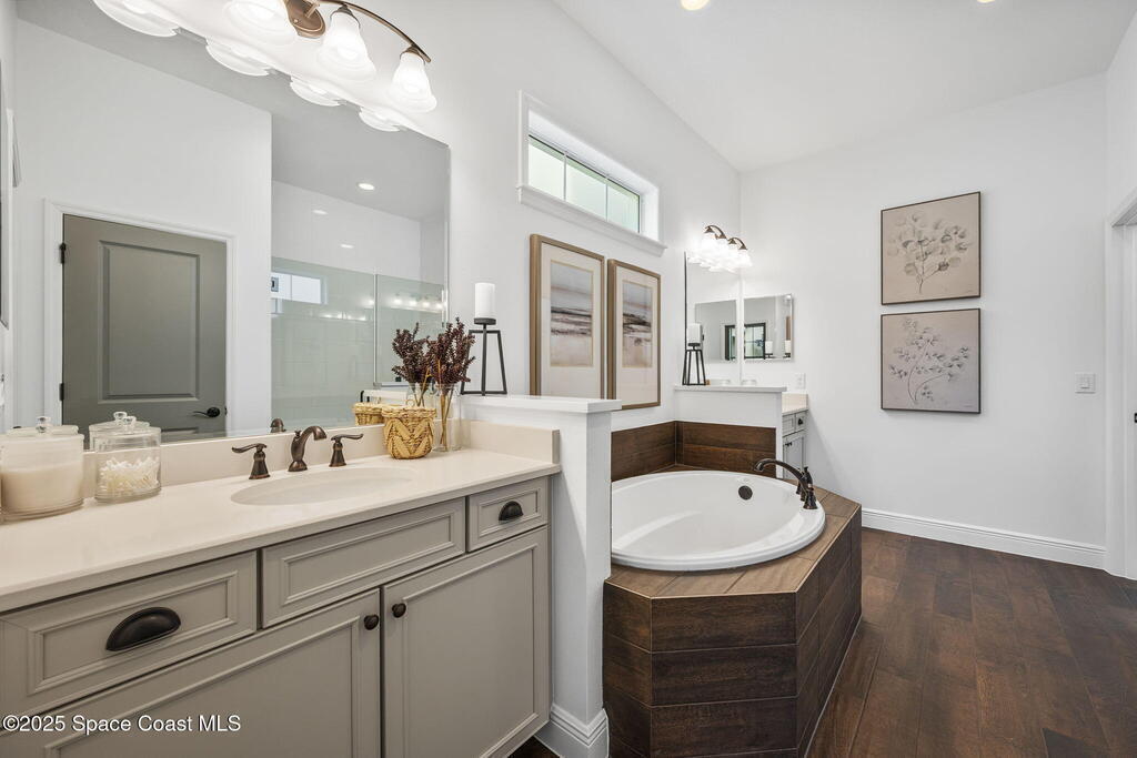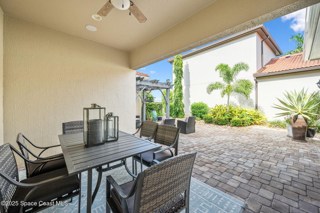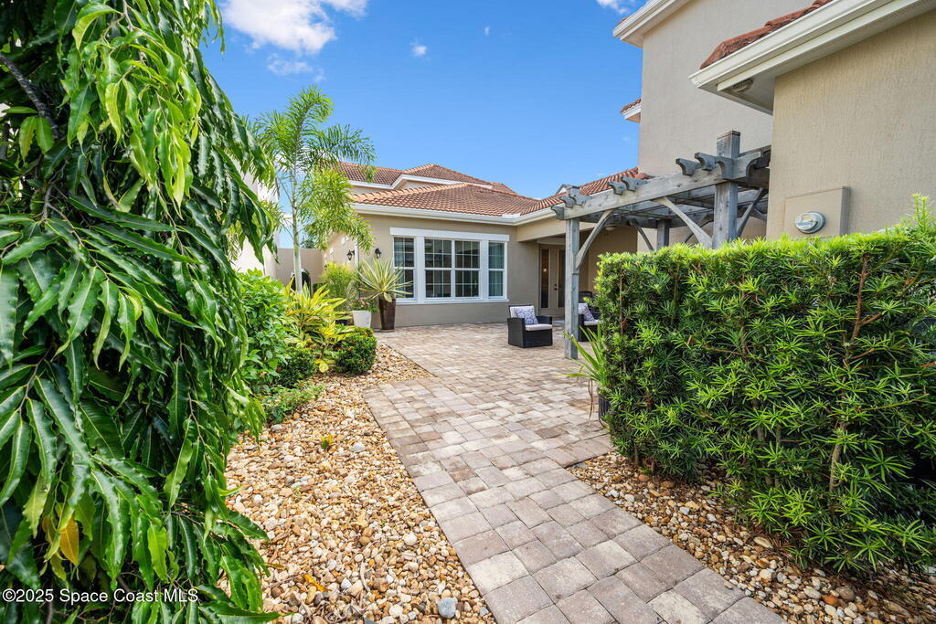 ACCEPTING BACKUP OFFERS * FORMER MODEL HOME & HAS NEVER BEEN LIVED IN * LOADED With UPGRADES * This stunning Spanish Colonial-inspired home evokes a sense of timeless romantic charm. The Kitchen is stylishly appointed w/Maple Glazed cabinets, quartz countertops, built in refrigerator, gas range, farmhouse sink, bronze hardware, walk-in pantry with formal dining room adjacent. Down the hall is the wine nook with wine chiller - so chic! The Primary Suite is conveniently located on the first floor, featuring picturesque windows that invite the beauty of the outdoors in. The luxurious ensuite includes double vanities, a soaking tub, a walk-in shower, and a spacious walk-in closet. Beside three other bedrooms, the home features a bonus room w/4th bath, media center, Laundry room with tub, oversized 2 car garage with golf cart option, and a spacious, fenced in paver courtyard with lanai and pergola creating a private tropical oasis. HOA covers lawn care, irrigation and exterior painting!