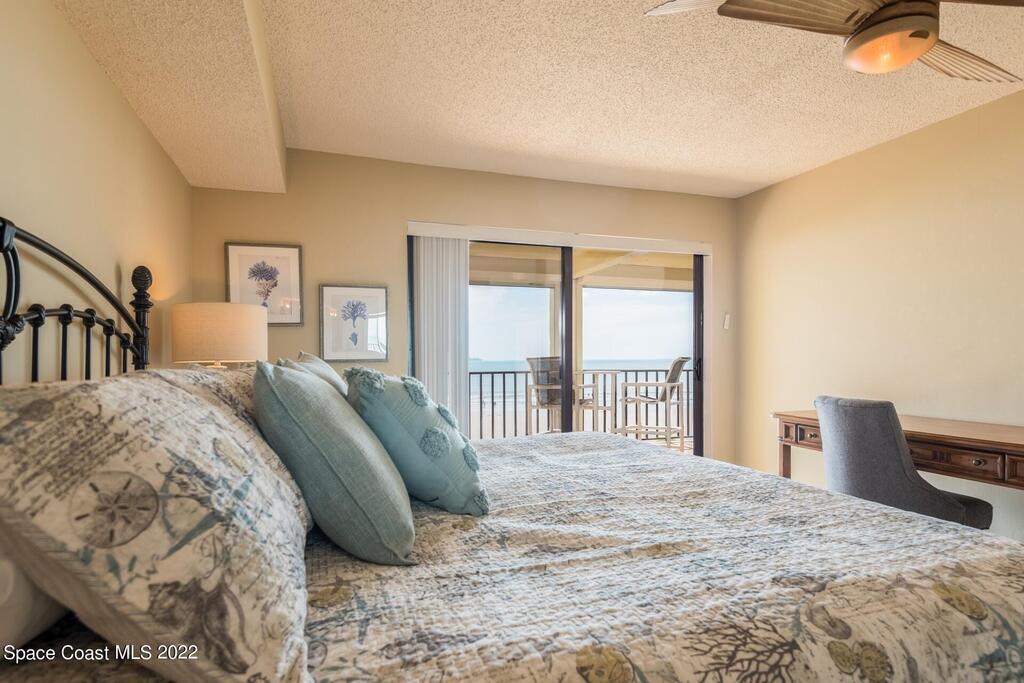 Best view on the beach! This direct oceanfront 2/2 end-unit features an open floor plan, split bedrooms with balconies on both sides, spacious kitchen, bright windows, 2nd family room for guests, walk in closets, large separate laundry room and all fully furnished. Relax and enjoy spectacular views north and south from your 250 sq./ft. balcony with plenty of room to entertain. Private 1 car garage. Wi-Fi and basic cable included! Day watch the ocean, cruise ships passing by, Cocoa Beach pier and rocket launches! This highly desirable, building is quiet with owners occupancy at 90%. Guest king bed converts to 2 twins. Don't miss this rare opportunity to live in Las Palmas! This unit is available for 6 months and up to 12 months.