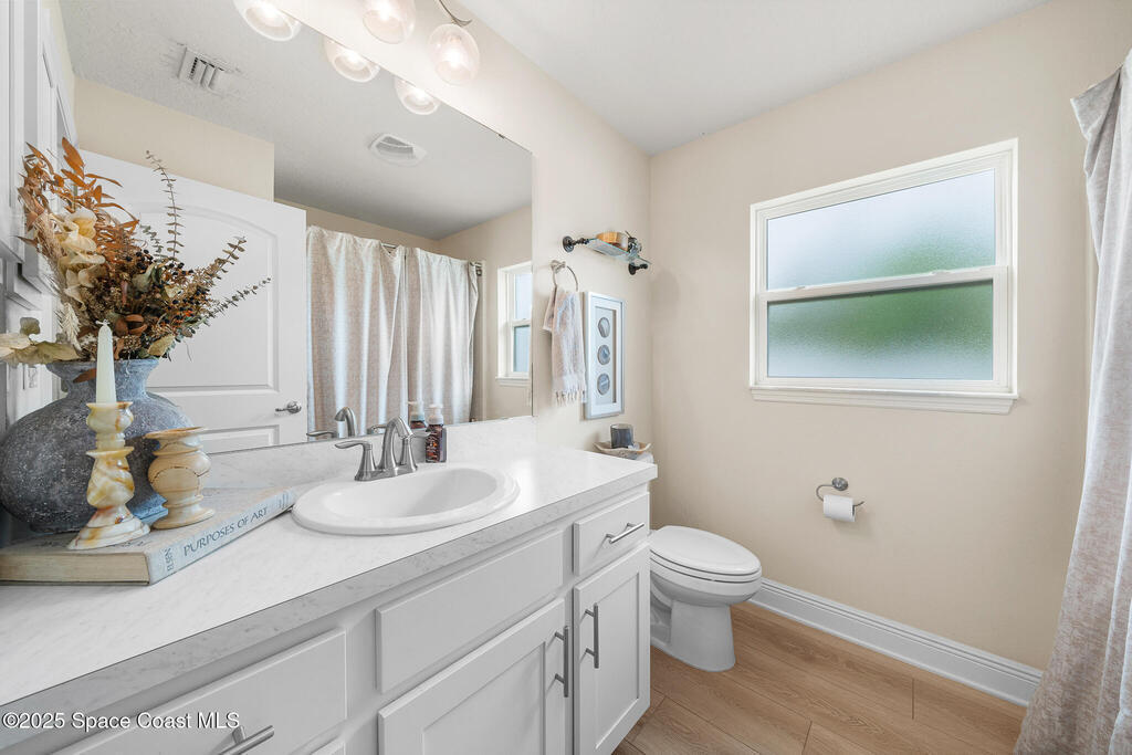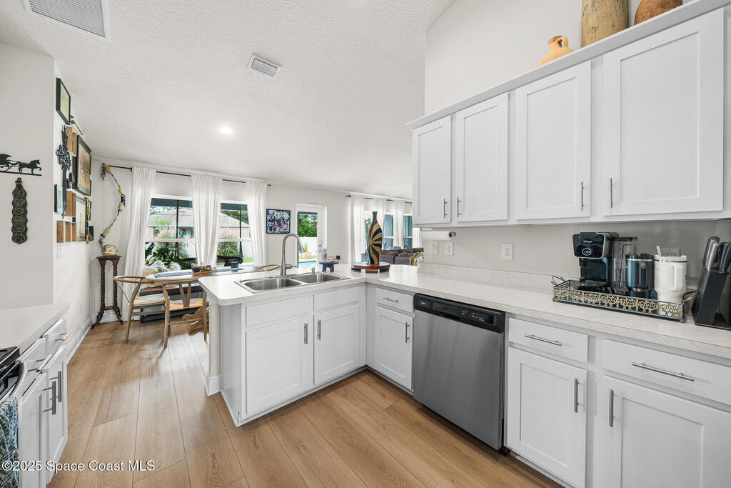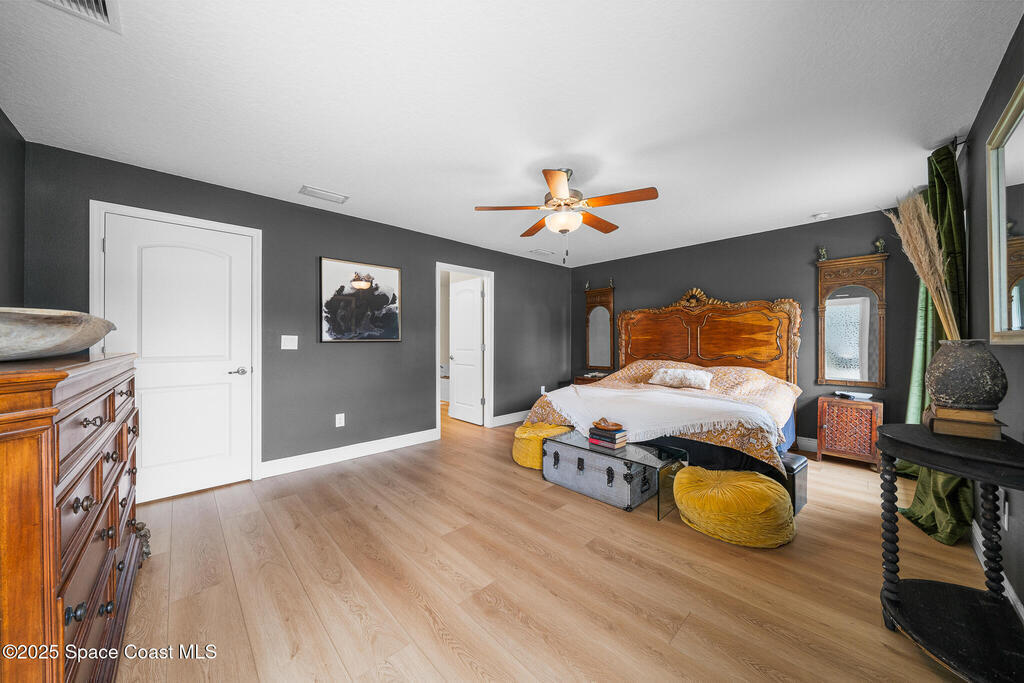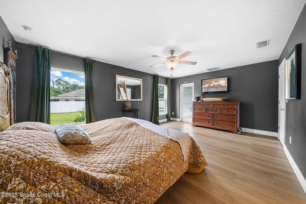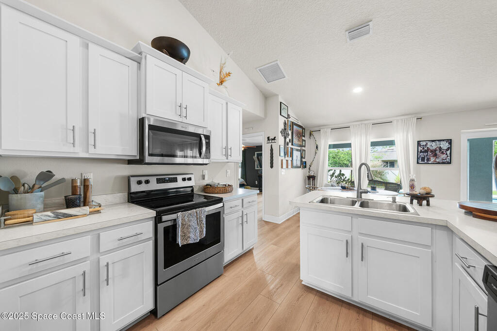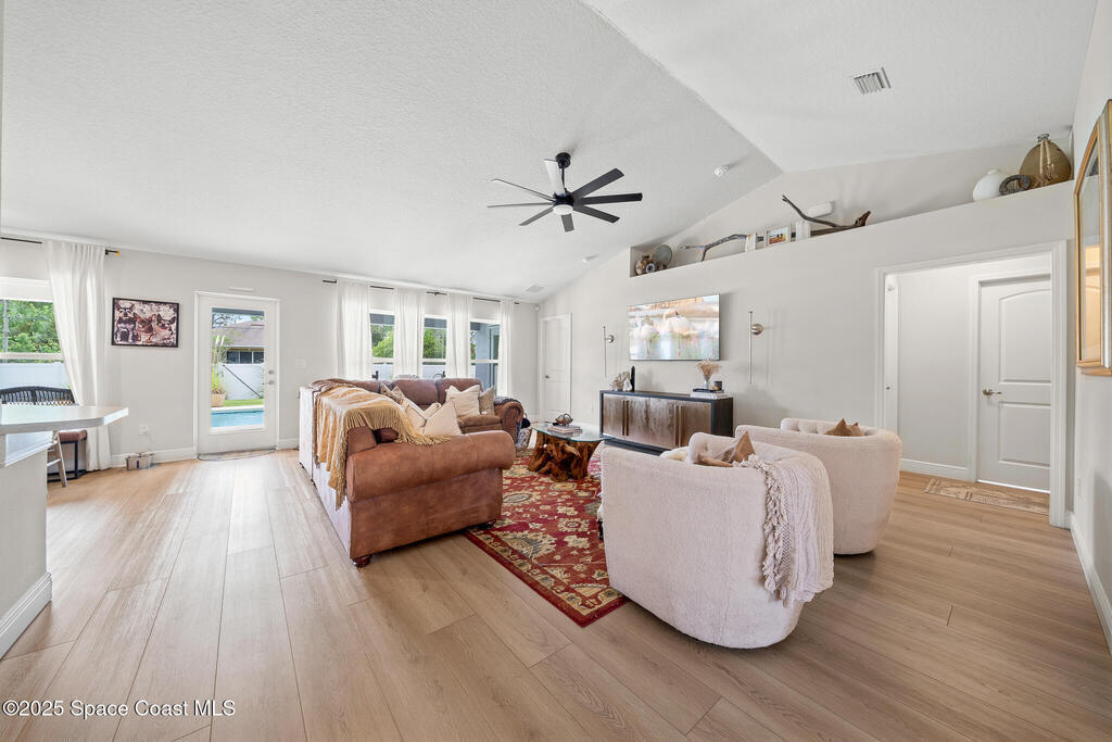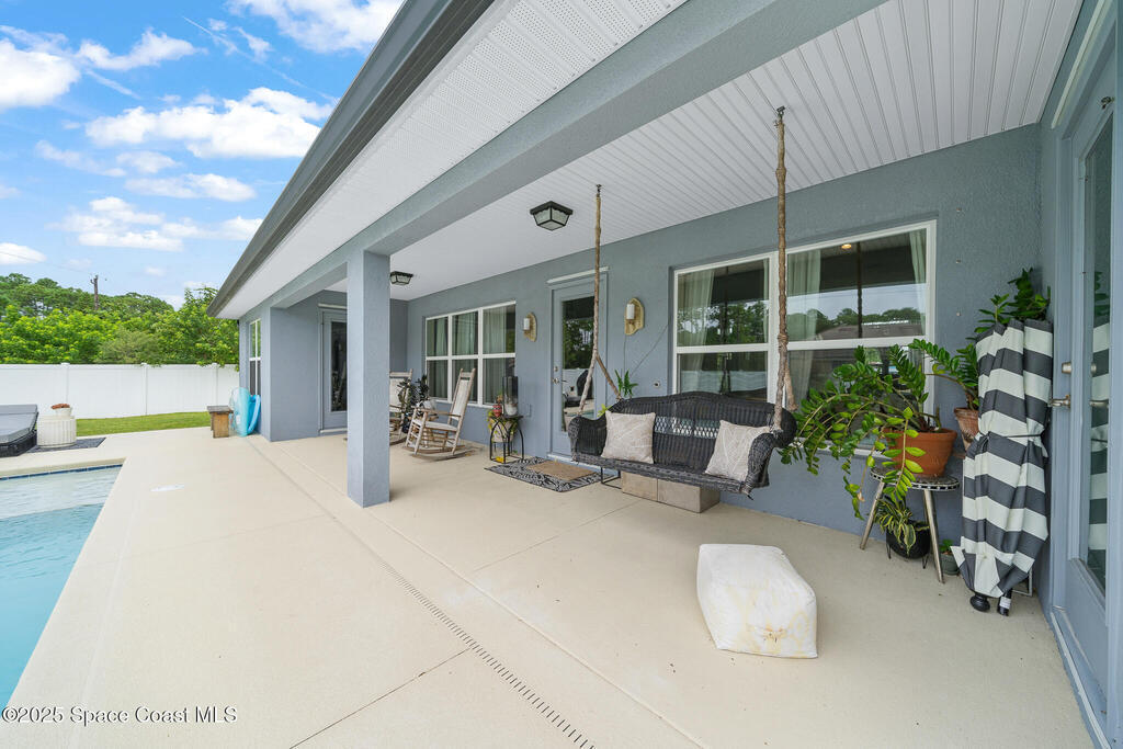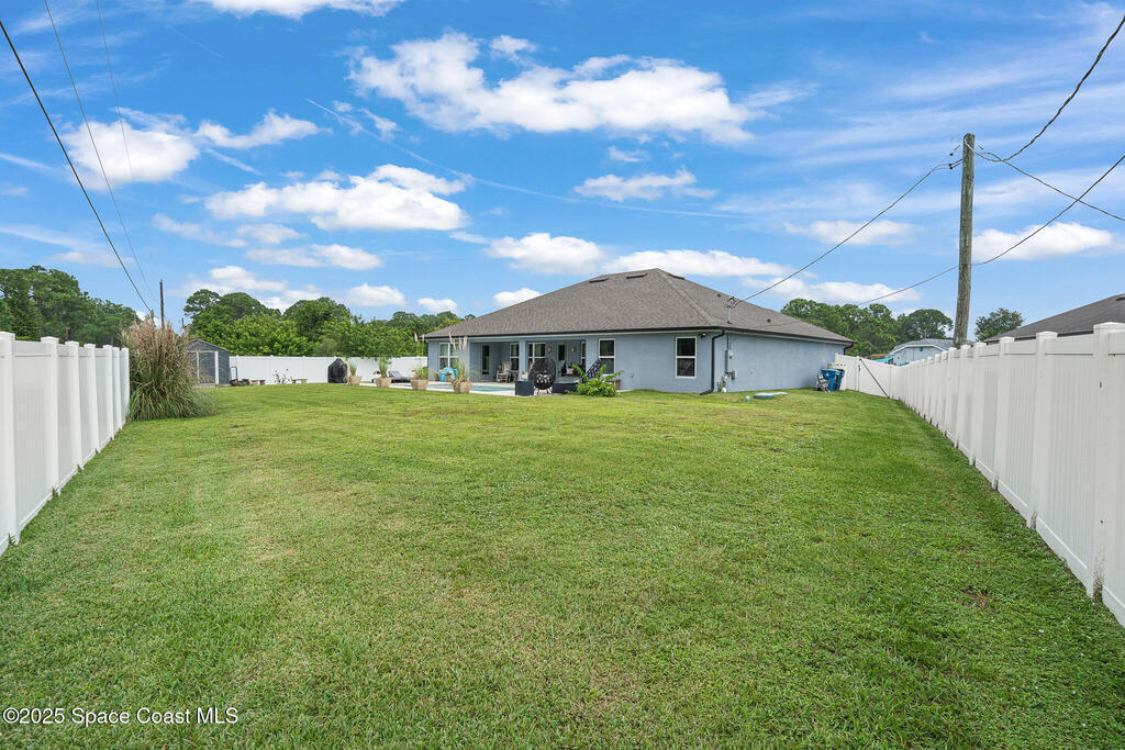 Better than new home with designer features, a POOL and NO HOA! Split floor plan with the primary and guest bedroom overlooking the pool, two more guest bedrooms on a separate hall. Primary bathroom with 2 sinks, separate soaking tub and shower, and 2 walk in closets. Versatile floor plan with a formal living room and dining room with high ceilings. The kitchen is open to the family room and both have views of the pool and fully fenced backyard. Breakfast bar and eat in kitchen nook for entertaining. Dreamy lanai for relaxing next to the salt water pool and expansive backyard. The spacious laundry room leads to an ample 2 car garage. Tucked away in Port Malabar conveniently located near schools, shops and restaurants.