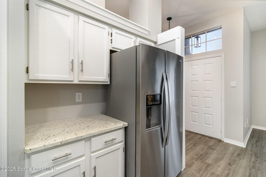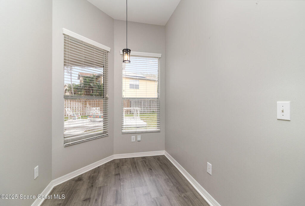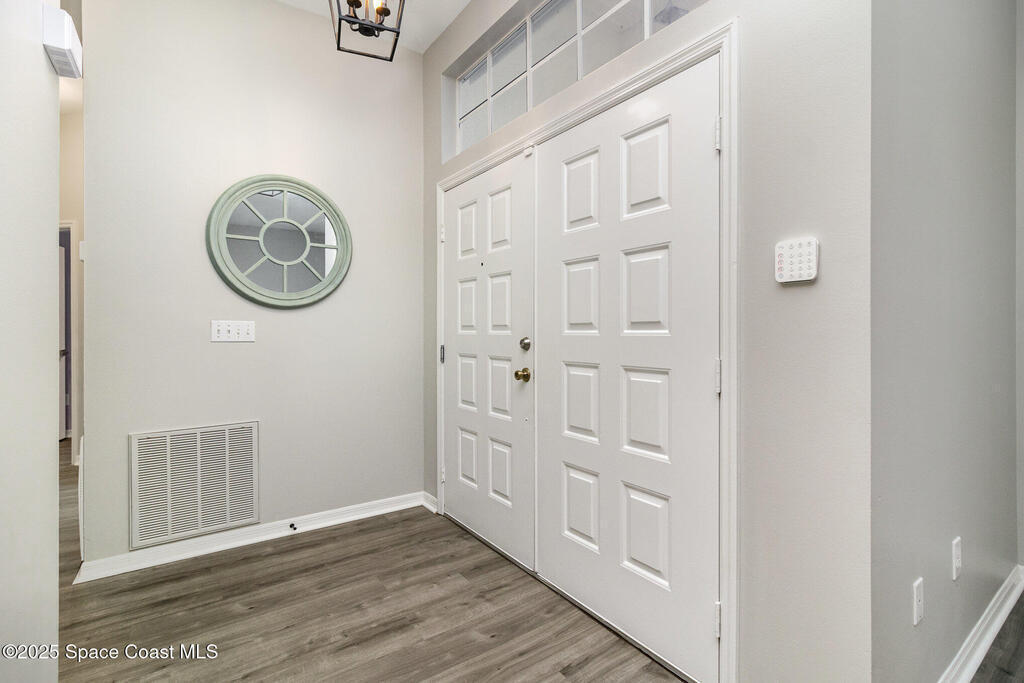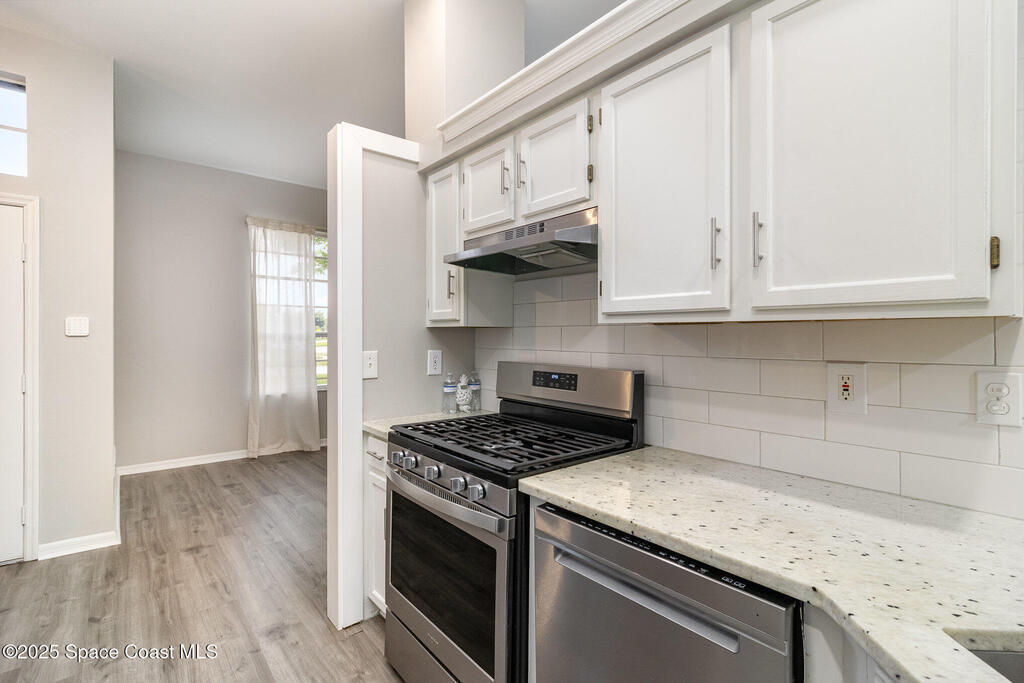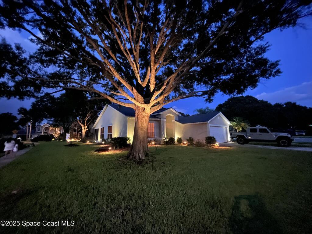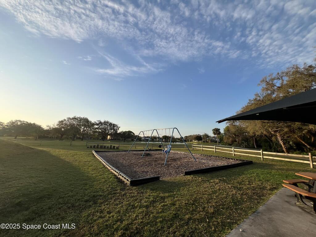 Beautifully updated 3BR/2BA home located in the heart of Viera. This move-in-ready property features luxury vinyl plank flooring throughout, energy-efficient LED lighting, and a modern kitchen with stainless steel appliances, GAS RANGE, granite countertops, and stylish cabinetry. Both bathrooms have been fully renovated with updated vanities, tiled showers and floors, and new commodes.Enjoy a private, fenced backyard with a wood deck and party lights--perfect for entertaining or relaxing outdoors. Additional features include an indoor laundry area with washer and dryer included, EV plug in the garage, Ring doorbell, and an optional alarm system. Lawn care is included. Owner will consider one small dog.Community amenities include a park at the entrance and a walking trail leading to Woodside Park and Pieloch Dog Park. Conveniently located near shopping, dining, major highways, and the beaches. Don't miss this exceptional Viera home