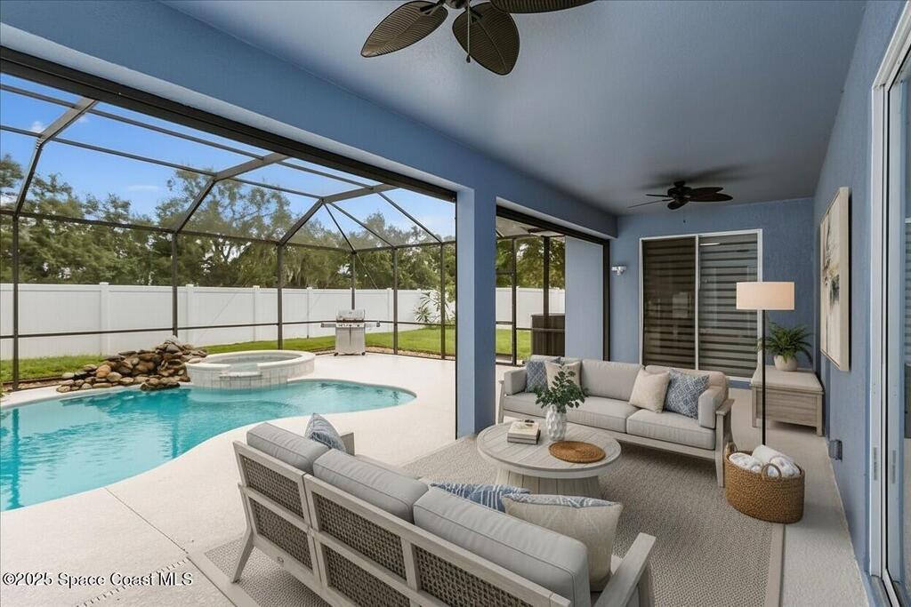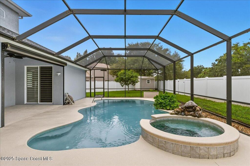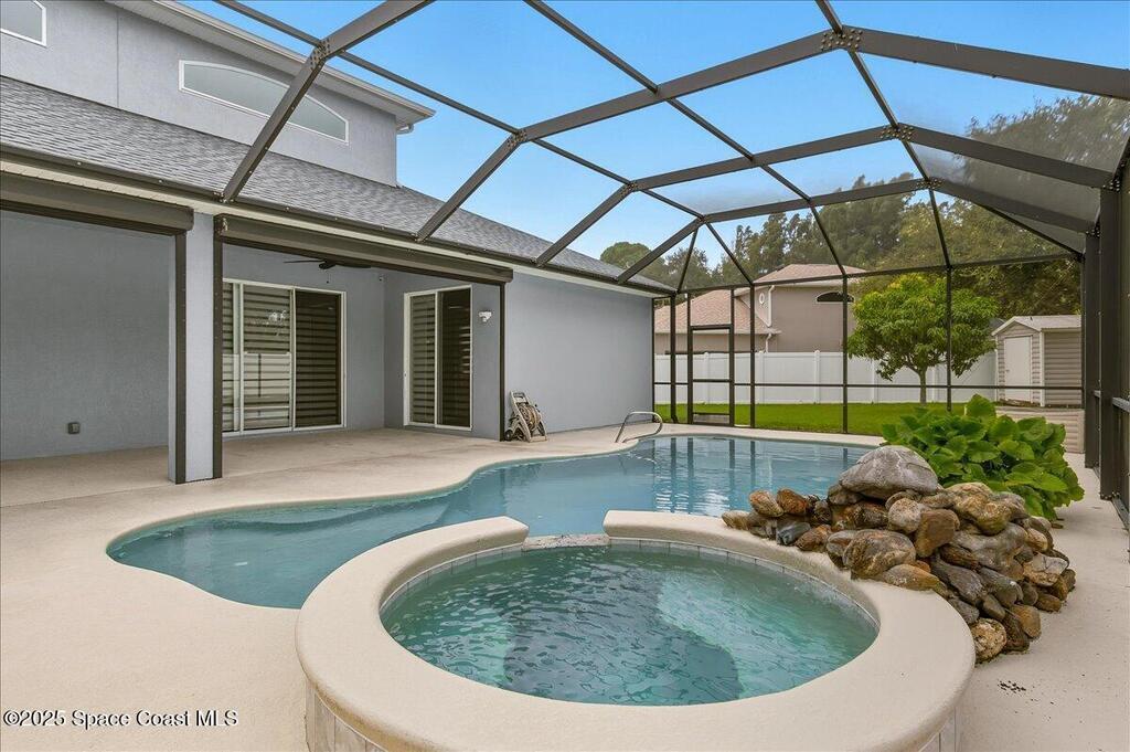 Nestled in a Gated Community, this Stunning Pool Home offers a perfect blend of style, comfort, and functionality. Step inside and be greeted by a fresh and vibrant interior. Fabulous kitchen offers a huge pantry, gleaming appliances, granite, wood cabinets and a breakfast bar that opens to the relaxing family room. Enjoy additional entertainment space on your 1300+ sq.ft. screened lanai! The backyard oasis includes a privacy fence, shed, gas grill - don't forget the heated pool and spa! Unique floorplan, perfect for multi-generational living! Luxurious, 1st floor primary bedroom offers dual sinks, quartz, walk in shower, soaking tub, custom closets & blinds. Your private office is right around the corner. A gorgeous wood staircase leads to 4 bedrooms & 2 full baths. The spacious loft makes an ideal game room -for any age! All Major Systems - Roof, AC, HW & Windows have recently been updated providing peace of mind for years to come!