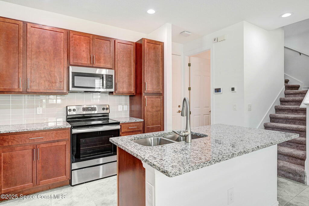 For RENT: Centrally Located Light, bright, and move-in ready! This charming end unit townhome is nestled in the gated community of Riverwalk of Melbourne. Enjoy resort-style living with access to a community pool, spa, sauna, fitness center, playground, clubhouse, and more! Inside, you'll love the open concept layout with TILE flooring downstairs and carpet only upstairs. The updated kitchen features 42'' solid wood cabinets, granite countertops, stainless steel appliances, and a stylish backsplash. Sip your morning coffee on the cozy screened-in porch. Upstairs offers a spacious primary suite with walk-in closet, dual vanities, granite counters, and walk-in shower. Two more bedrooms, a full bath with shower/tub combination, and a laundry closet with stackable washer/dryer complete the space. A 2-car garage and extra storage add convenience. Rent includes water, sewer, trash, internet, basic cable, and landscaping! All just minutes to major employers, EGAD, and beaches. Must see!