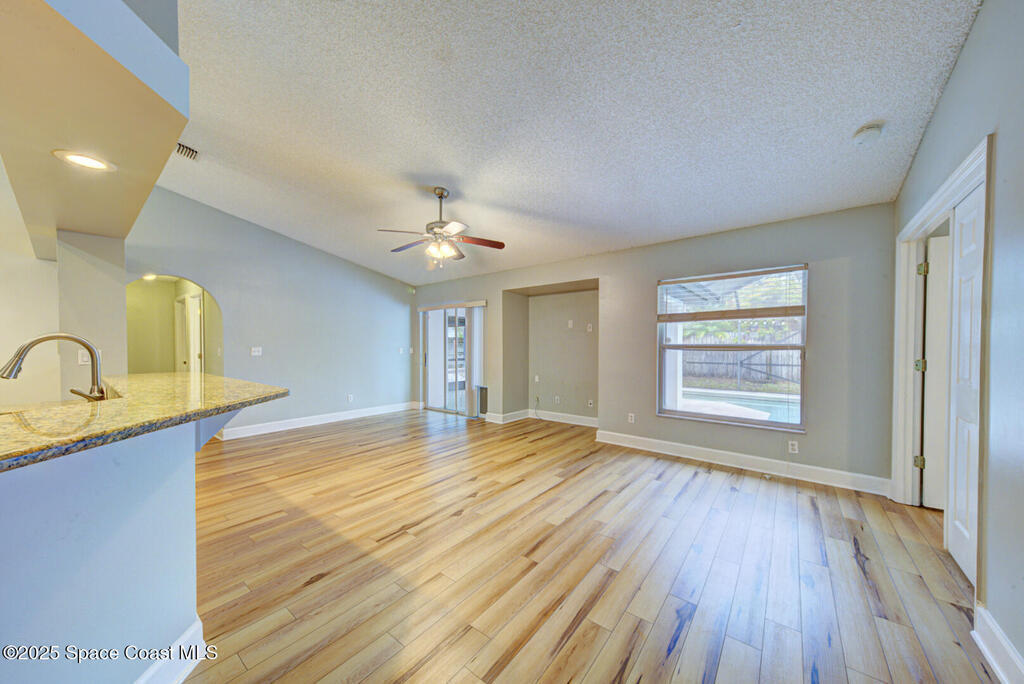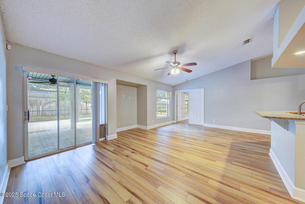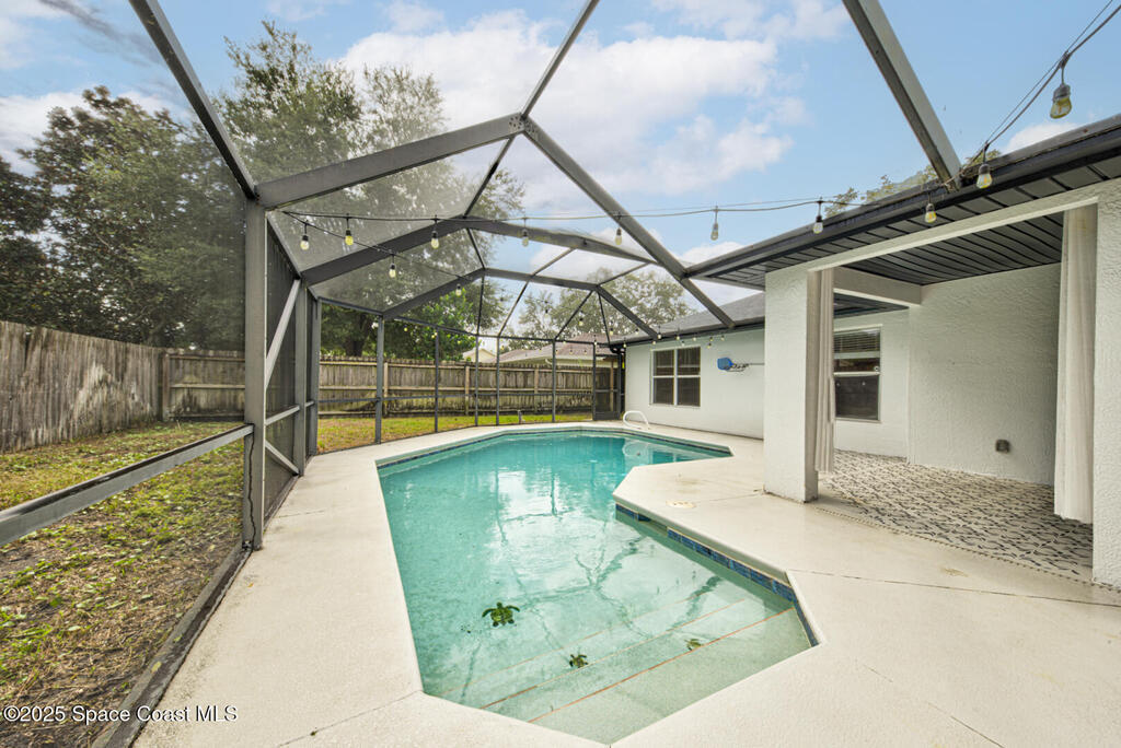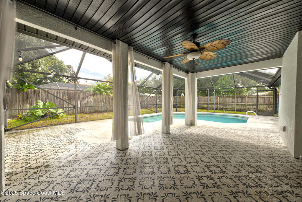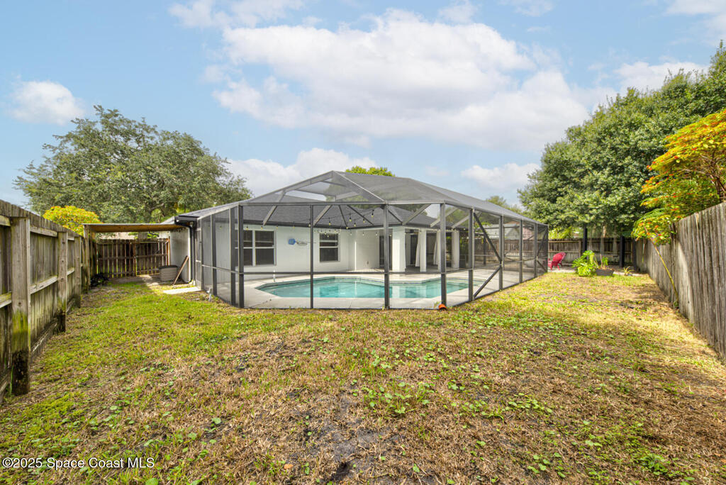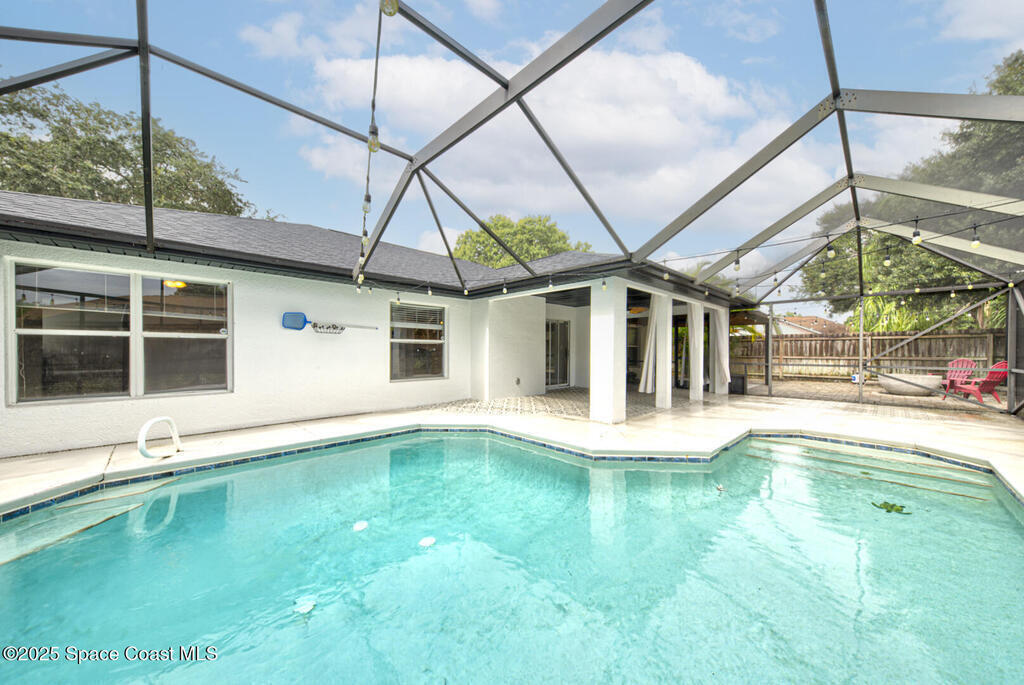 Welcome to this beautiful 3-bedroom, 2-bath pool home nestled in a well-established neighborhood. Additionally, this home has a VA assumable loan of 2.75% for those who qualify. This home was designed with comfort and versatility in mind, the open floor plan offers both formal and informal living areas, a formal dining space, and a convenient breakfast bar. The flexible layout allows for multiple uses to suit your lifestyle. Enjoy waterproof laminate flooring throughout the main living areas and a spacious master suite with an oversized walk-in closet. The kitchen features granite countertops and abundant cabinet space, that opens onto the family room. A large laundry room and 2-car garage add practicality and convenience. Step outside to a covered patio perfect for entertaining, overlooking a screened-in pool. The fully fenced backyard ensures privacy for family and pets. With a brand-new roof (2025) and a prime location near US 1, I-95, Melbourne Airport, Patrick Space Force Base,