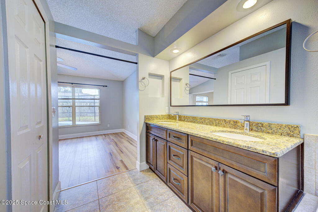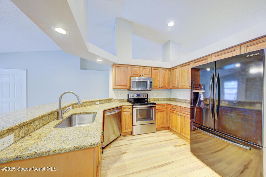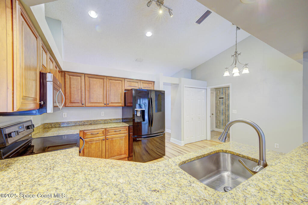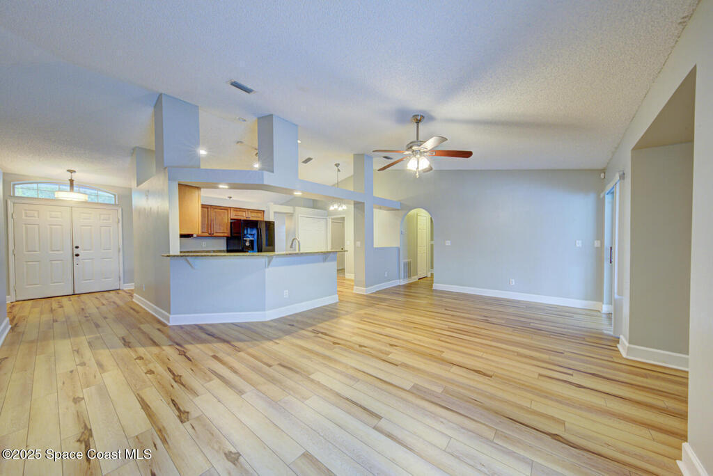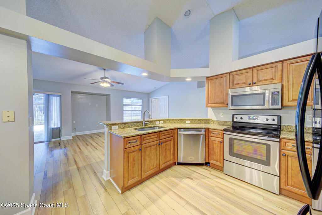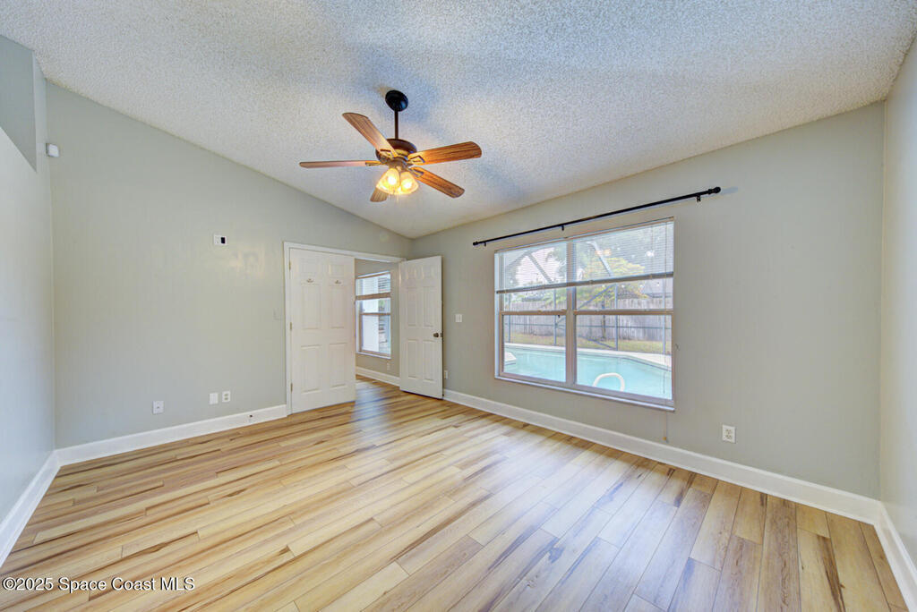 Welcome to this beautiful 3-bedroom, 2-bath pool home nestled in a well-established neighborhood. Additionally, this home has a VA assumable loan of 2.75% for those who qualify. This home was designed with comfort and versatility in mind, the open floor plan offers both formal and informal living areas, a formal dining space, and a convenient breakfast bar. The flexible layout allows for multiple uses to suit your lifestyle. Enjoy waterproof laminate flooring throughout the main living areas and a spacious master suite with an oversized walk-in closet. The kitchen features granite countertops and abundant cabinet space, that opens onto the family room. A large laundry room and 2-car garage add practicality and convenience. Step outside to a covered patio perfect for entertaining, overlooking a screened-in pool. The fully fenced backyard ensures privacy for family and pets. With a brand-new roof (2025) and a prime location near US 1, I-95, Melbourne Airport, Patrick Space Force Base,