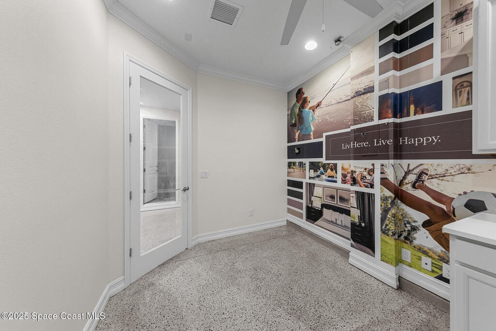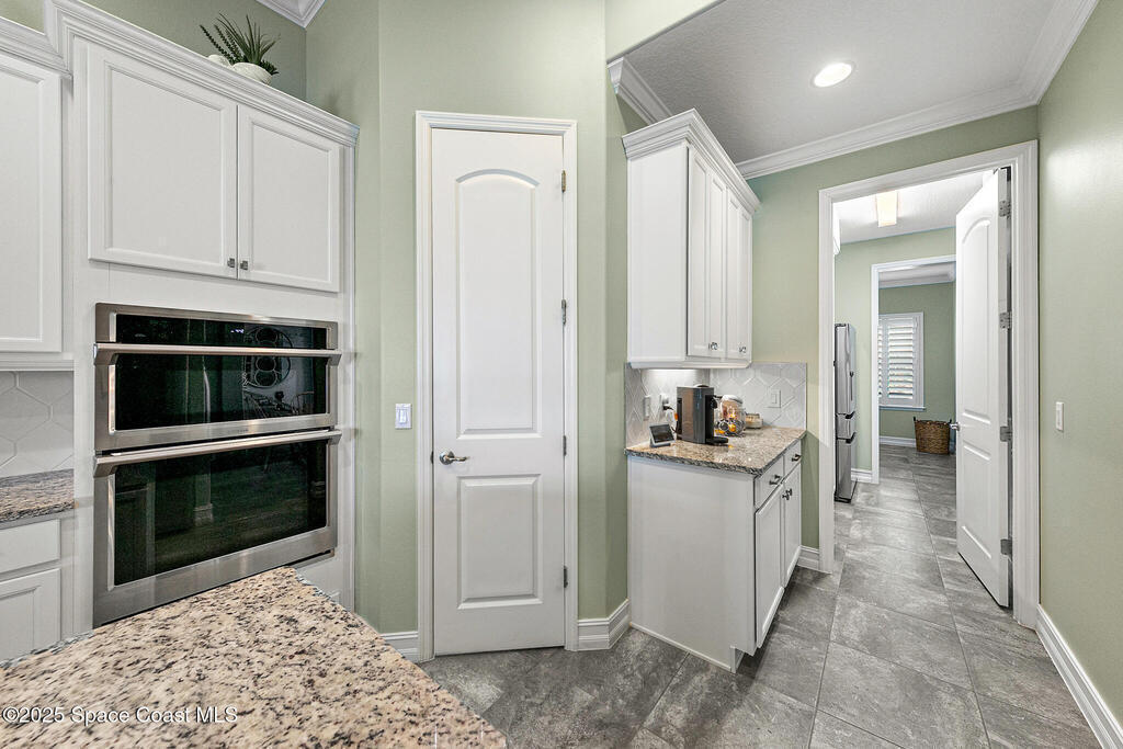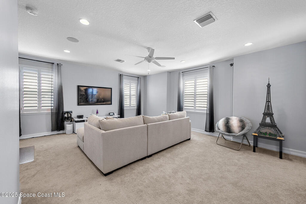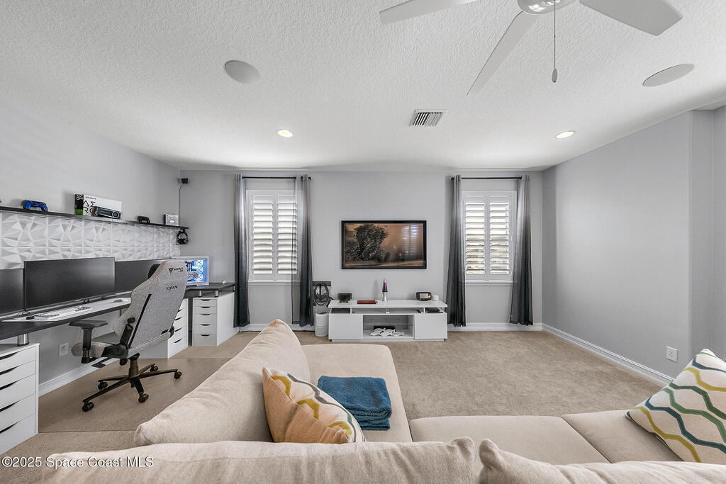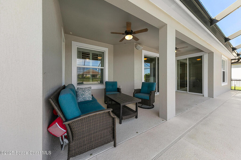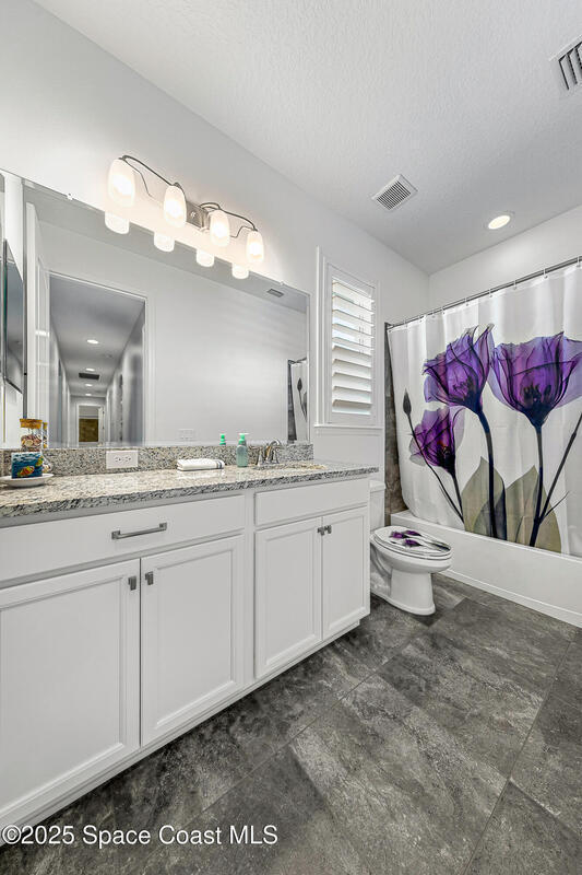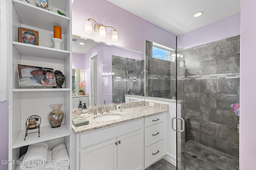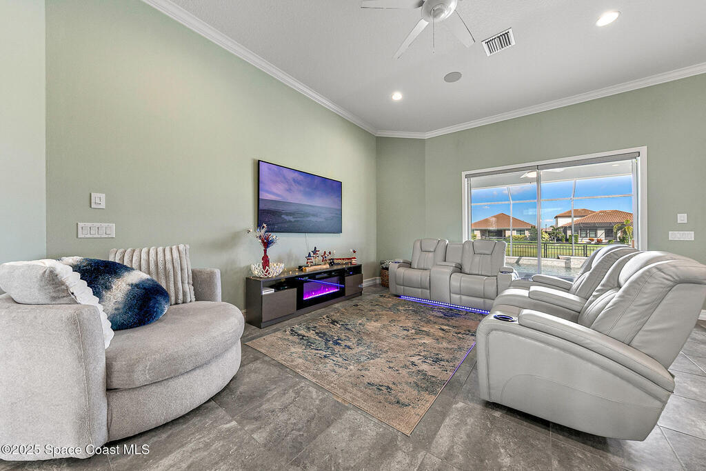 This lakefront pool home is in the heart of Viera, and once the model for the neighborhood. Located behind the gates of the Stonecrest subdivision which is less than 1 mile from I-95 and in the heart of and in Brevard's premier school district. This gorgeous 5 bedroom, 4 bathroom lake front home is LOADED with extras. This spacious gourmet kitchen has a gas stove. IMPACT WINDOWS throughout home. The garage is air conditioned with a separate workspace/office (the living sq ft doesn't include the garage). The outdoor living has a large porch & screened pool with tranquil waterfront views. The floor plan is well versed with office/den in the front of home plus a HUGE bonus room bath and the 5th bedroom on the second level. This golf cart friendly subdivision has a community pool, exquisite clubhouse, multiple pickleball and tennis courts and even a shaded playground with many walking paths to venture along. Home is turnkey, and ready for a new family for immediate occupancy.