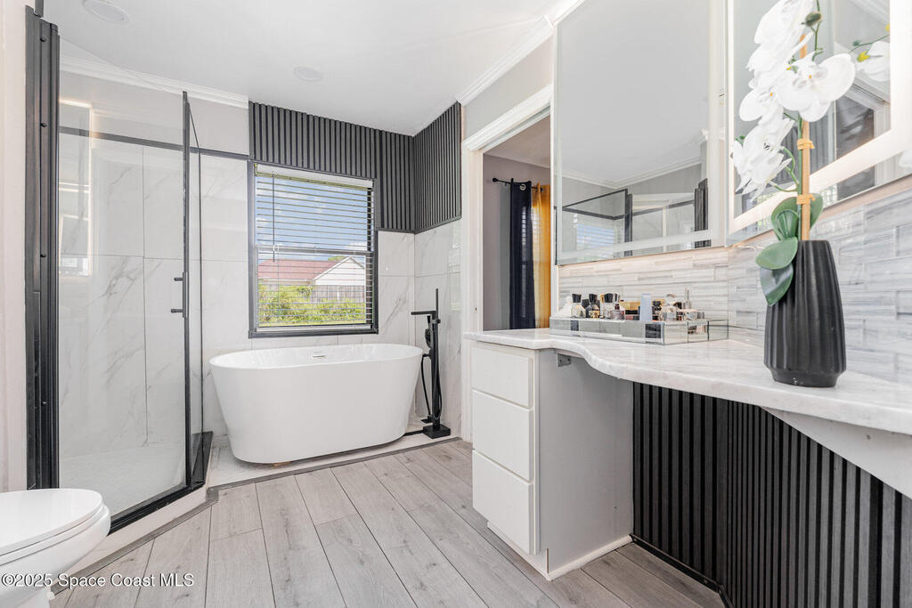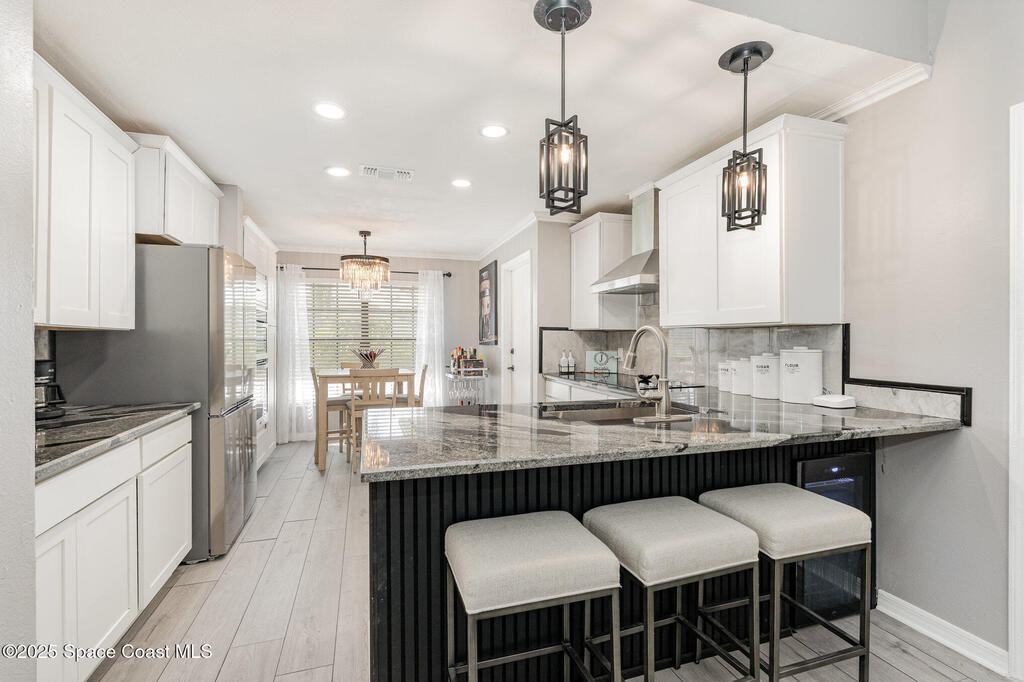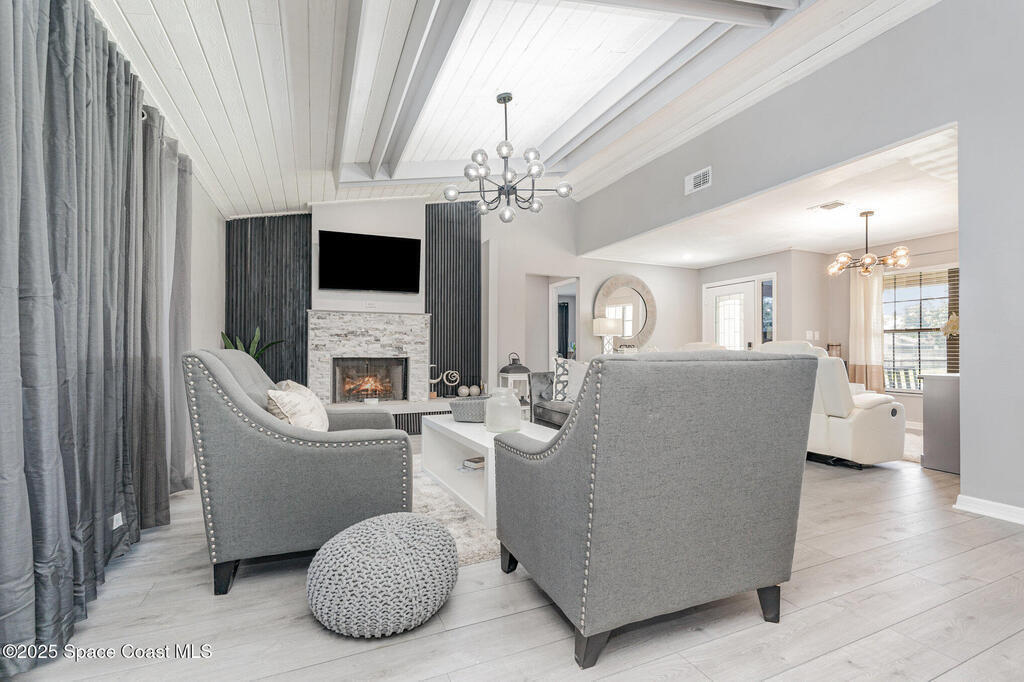This beautifully remodeled Palm Bay home perfectly combines modern upgrades with everyday comfort in an unbeatable location close to shopping, dining, and daily conveniences. Step inside to discover an inviting open layout featuring a stunning kitchen with granite countertops, all-new stainless steel appliances, and stylish finishes that make it the heart of the home. The spacious living area includes a cozy fireplace that adds warmth and charm, ideal for relaxing evenings or entertaining guests. The luxurious main bathroom offers a large soaking tub, light-up mirrors, and elegant designer touches, creating a true spa-like retreat. Every detail has been thoughtfully updated with fresh paint, new flooring, and modern fixtures throughout. To top it all off, the seller will install a brand-new roof before closing and allow the buyer to choose their preferred shingle color. This move-in-ready gem truly stands out--come see it today!