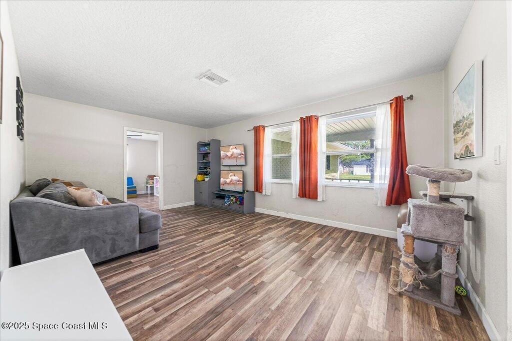 This beautifully updated four-bedroom, two-bath home offers the perfect blend of mid-century charm and modern comfort. Step inside to find an open, airy layout filled with natural light and stylish updates throughout. The heart of the home is the remodeled kitchen--featuring sleek two tone cabinetry, quartz countertops, a coffee bar, and an oversized island that opens to the family room, creating a true gathering space for family and friends. Both bathrooms have been tastefully renovated with thoughtful touches like built-in shower niches and modern light fixtures. Enjoy peace of mind with major upgrades already done for you: a brand-new roof, new AC system, hurricane-rated low-E windows, and a newer electrical panel. Every detail has been refreshed, from six-panel doors and baseboards to smooth wall textures and LED recessed lighting that brightens every corner. Nestled in a desirable neighborhood and complete with a two-car garage. Excellent location in the heart of Titusville.