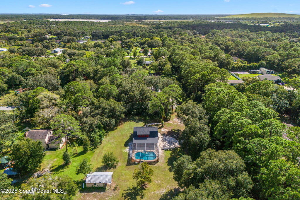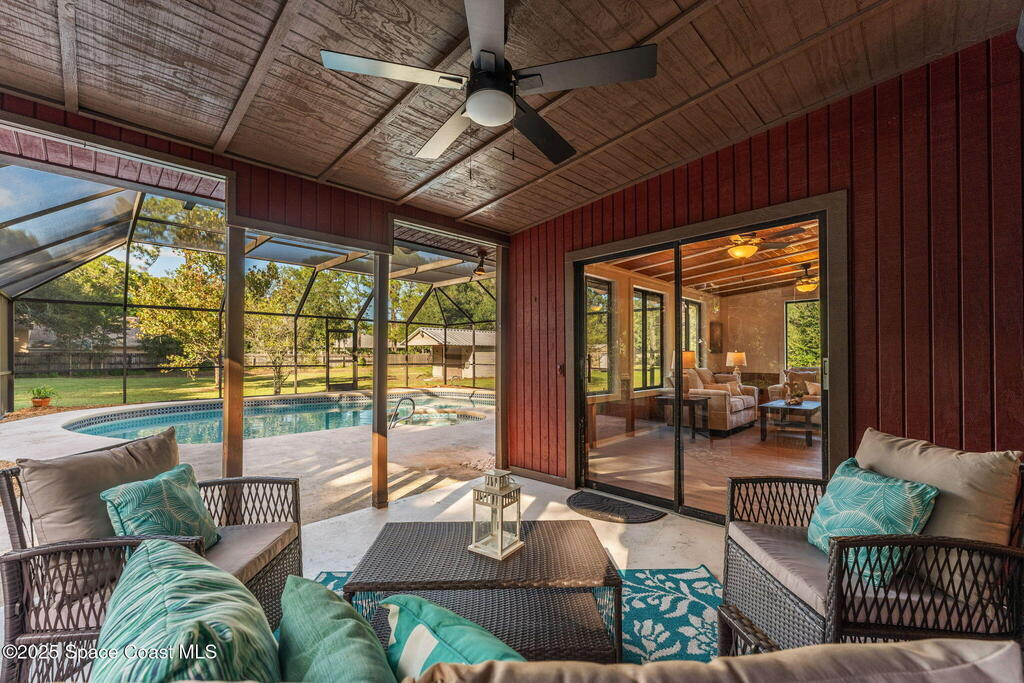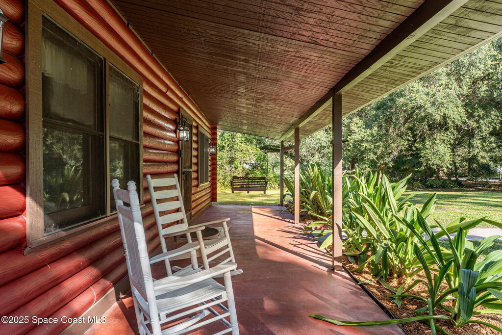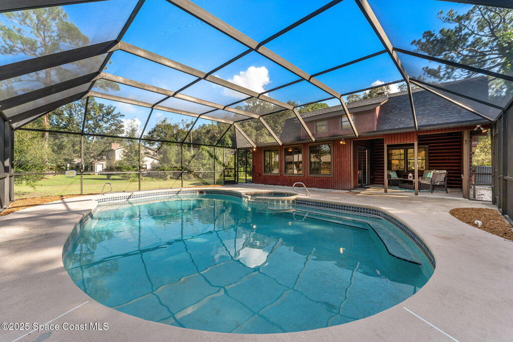 Set on over an acre in Canaveral Groves, this renovated 3-bed, 2.5-bath pool home feels like something out of a storybook, only this one comes w/ a new roof, new septic system, & an AC & water heater both under 2 years old. The wide front porch with tongue & groove ceiling & rich wood exterior welcome you in, where exposed beams, & a stone wood-burning fireplace give the home character you just can't fake. The brand-new kitchen has beautiful green shaker cabinetry, solid-surface counters, & SS appliances, opening into the dining area & a flexible bonus space w/ pool access. Upstairs, the primary suite includes dual closets & a private bath, while 2 additional bedrooms share a full hall bath. Outside, a screened pool w/ spa, covered patio, & sprawling backyard create a private retreat. A detached outbuilding adds storage or workspace flexibility. No HOA, plenty of privacy, & close to beaches, Cocoa Village, The Avenue Viera, & major highways.