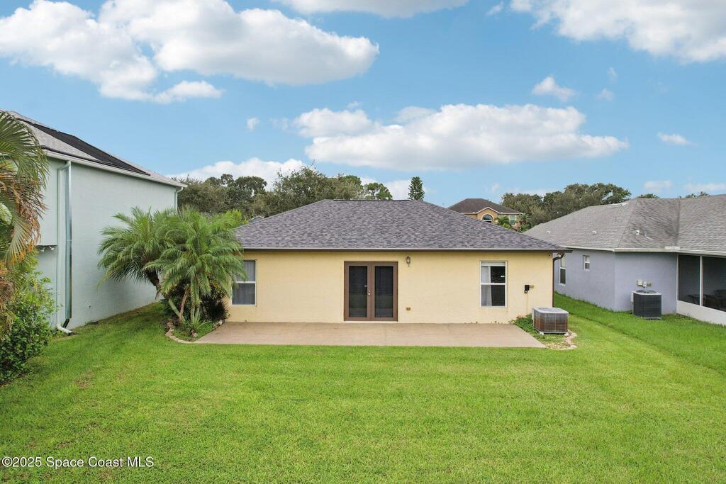 Must-see waterfront home! Beautifully maintained 3-bedroom, 2-bath concrete block home with a 2-car garage located in the highly desired community of Brookshire. This move-in ready home features granite countertops, stylish fixtures, and fresh paint in both bathrooms and two bedrooms. All appliances convey, including the washer and dryer. Additional upgrades include a 2023 reroof, Ring security system with cameras and door/window sensors, storm shutters, new commodes in both bathrooms, and LED permanent outdoor lighting around the entire perimeter. The garage comes equipped with cabinets and shelving for easy organization and extra storage. The community offers a great pool and playground, and the location is unbeatable- just 20 minutes to the beach, 40 minutes to Kennedy Space Center, and a little over an hour to Disney.