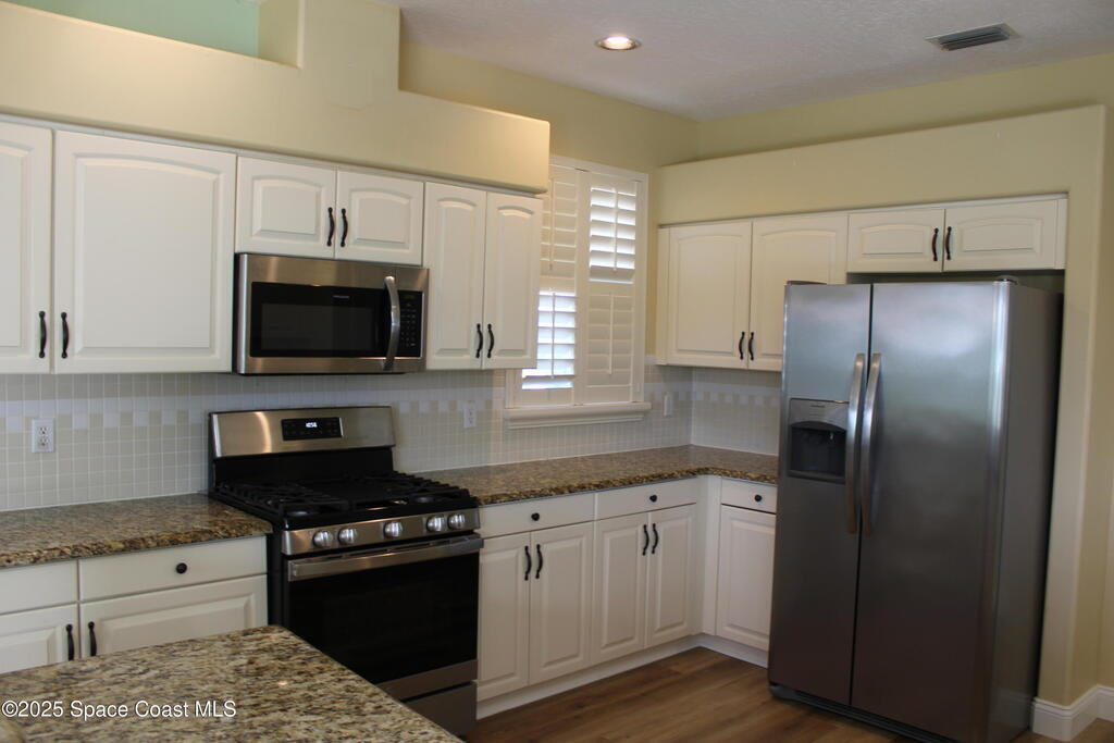 New roof being installed on this beautiful pool home in this quiet Viera Golf Community. Vaulted ceilings, granite counters, upgraded cabinets, gas range, formal dining area and breakfast nook. Triple slider doors to screened lanai pool/spa area makes the perfect layout for entertaining. LVP flooring in living areas, Master Suite includes step in shower, Tub and his/hers walk in closets. Easy close accordion shutters. Extra wide paver driveway in front and views of the natural preserve from the pool area. Centrally located close to all major highways, shopping, restaurants.