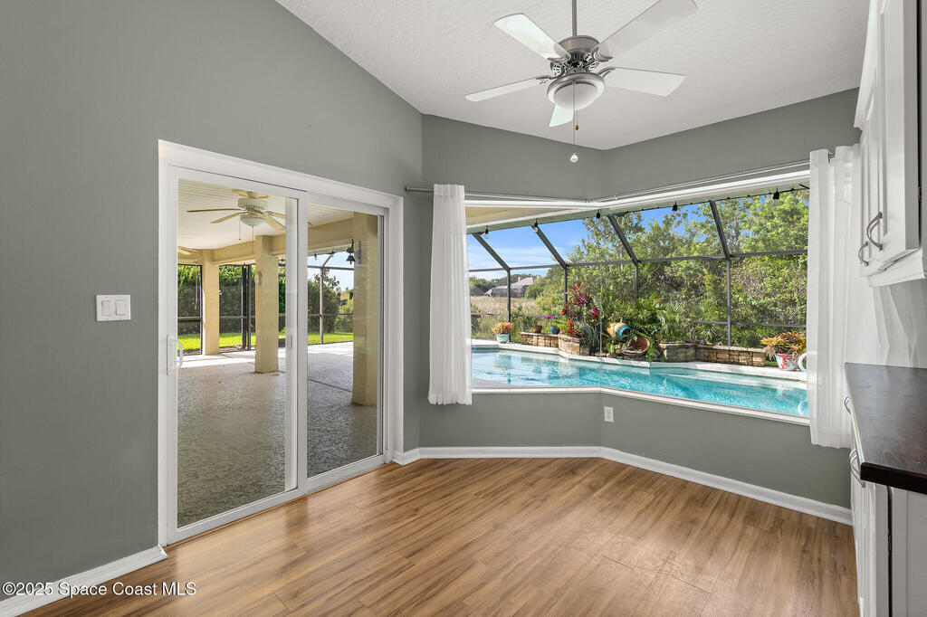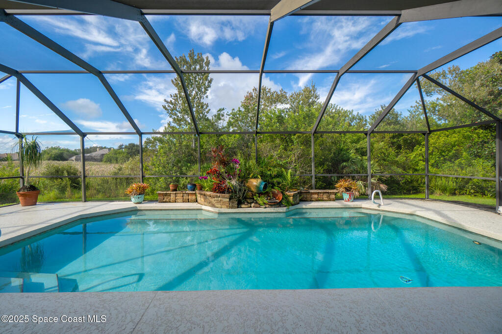 NEW hot water heater & newly resurfaced POOL at this beautiful Suntree home nestled beside a protected preserve. You will love the peaceful views & lush yard that flow seamlessly to your sparkling pool & covered lanai--ideal for year-round outdoor living. Step inside to an updated kitchen featuring granite countertops, classic white shaker cabinets, a subway tile backsplash & stainless appliances. The spacious laundry room, just off the kitchen, provides extra storage, a folding counter, and a built-in desk for convenience. The guest bath impresses with double granite sinks & direct access to the pool. Retreat to the expansive primary suite, complete with a soaking tub, tiled walk-in shower, dual closets (including a spacious walk-in) & direct lanai access. With a new 2024 roof, you'll enjoy lasting peace of mind. Located in the popular Suntree area--close to parks, shops, restaurants, golf & just 10 minutes from Melbourne's pristine beaches--this home is ready for you!