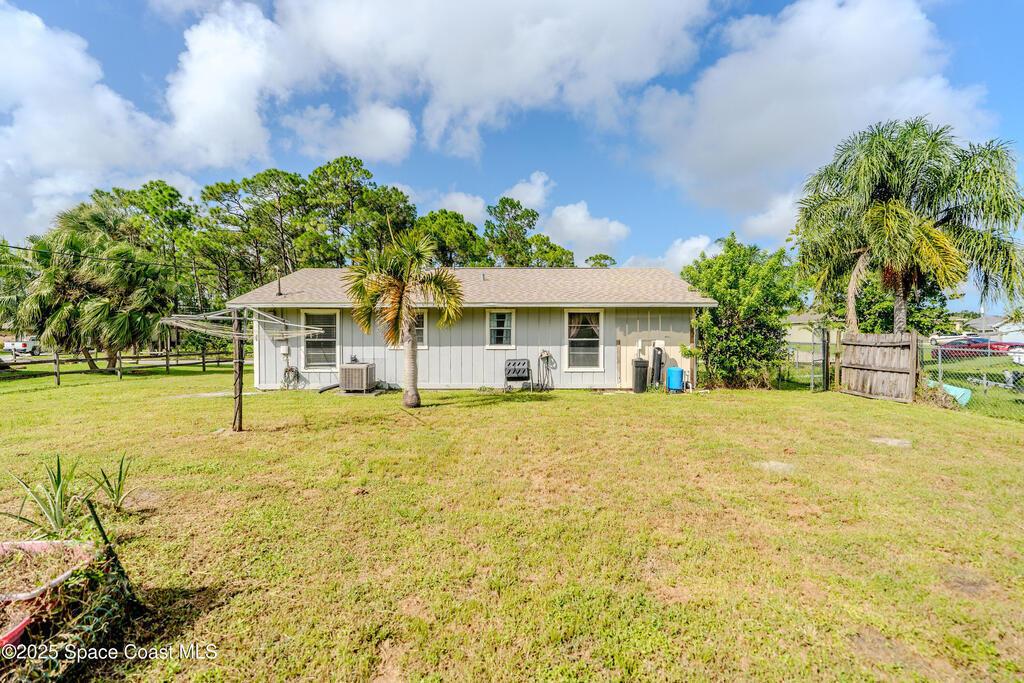 Charming and priced to sell! Nestled in a quiet Palm Bay neighborhood, this well-maintained home offers comfort, convenience, and peace of mind with a newer roof and HVAC system.Step inside to a bright, welcoming living area that flows into a cozy kitchen and dining space, perfect for everyday living or entertaining. The huge backyard provides endless possibilities--ideal for family gatherings, pets, or adding your dream pool or garden. Conveniently located near shopping, schools, and parks, this move-in-ready home is a great find for first-time buyers, downsizers, or investors alike!