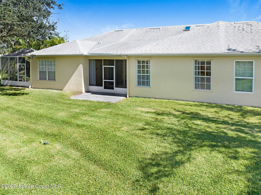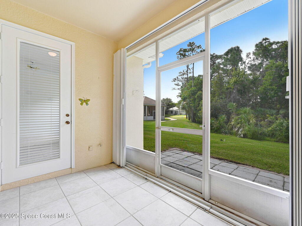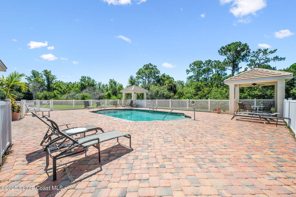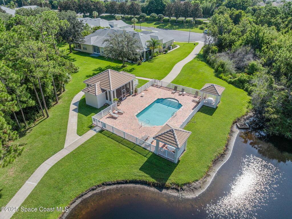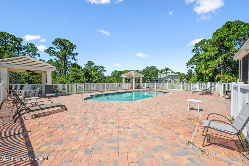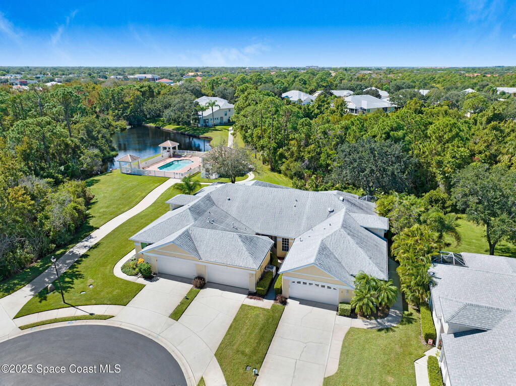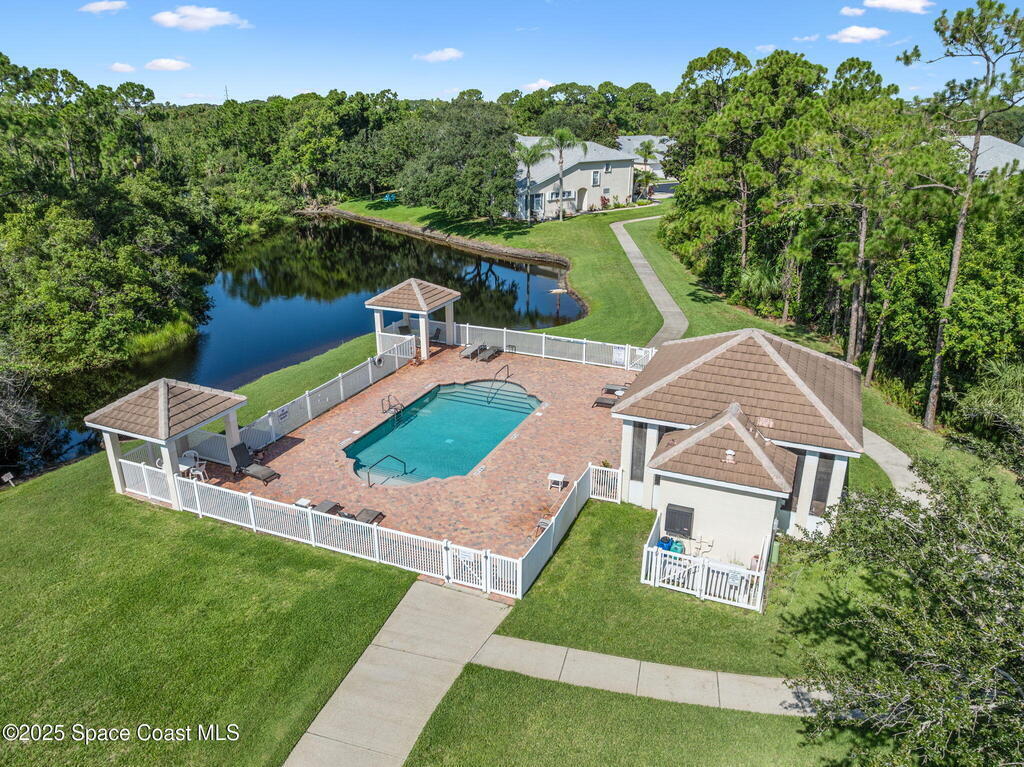 Huge price changed for a quick sale! Welcome to the gated community of Magnolia Pointe. This 2 Bedroom 2 Bath unit next to the last one towards the end of the cul-de-sac, steps to the community pool. The huge eat-in kitchen features an island, abundant cabinetry, cozy breakfast nook. Retreat to the spacious Primary Bedroom boasting dual closets plus + extra linen closet. The main bath features a garden soaking tub, separate shower, vanity with double sinks. Vaulted ceilings, skylight, recently rescreened lanai, accordion shutters at the front door and in the back, 2012 A/C, 2020 Hot Water Heater, Laundry with washer and dryer. TRUE WORRY-FREE LIVING! Solid concrete block construction and 2017 Roof provide superior durability. The comprehensive HOA fee is incredible value, covering the roof, exterior paint, lawn/irrigation, termites, pool, + exterior insurance! Minutes to shopping, dining, Viera Hospital, parks, A-rated schools, and a short drive to the beautiful Space Coast beaches.