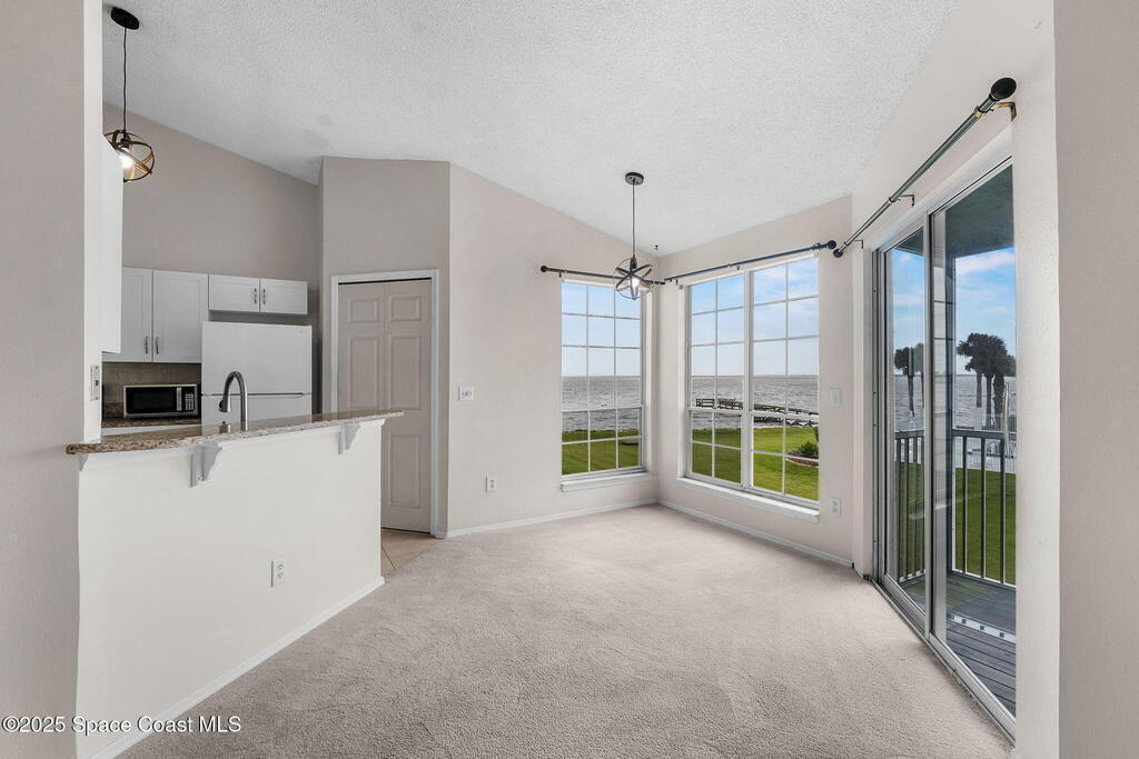 Welcome to Sunrise Landing -- where rocket launches, river breezes, and modern updates meet! This inviting 2-bedroom, 2-bath 2nd-floor condo offers stunning views of the Indian River, North Pool, and rocket launches right from your private balcony. Step inside to a bright, open floor plan with vaulted ceilings that make the space feel expansive and full of light. The recently updated kitchen features modern cabinetry, granite countertops & laundry. Both bathrooms have been refreshed, giving a clean, contemporary feel, and the new carpet adds comfort underfoot. The spacious primary suite includes an en-suite bath with step in shower. Sunrise Landing is a riverfront community with 2 pools with spa & wet/dry sauna, tennis & pickleball courts, 2 fishing pier2, grills, shuffleboard, car wash area-- perfect for an active Florida lifestyle with low HOA fee. Small pet friendly. Enjoy rocket launches, dolphins, and sunrises right from home -- your Space Coast getaway awaits!