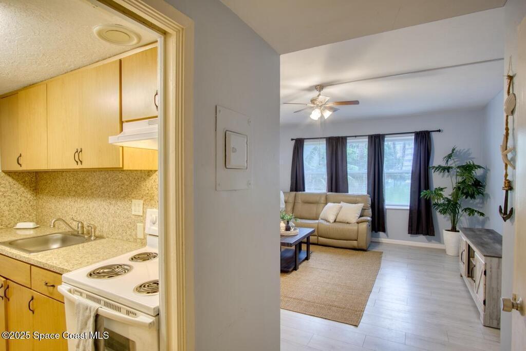 Live the beachside lifestyle in this immaculate, move-in-ready FIRST FLOOR condo--directly across the street from the Atlantic Ocean. Low condo fees which include cable, water, and pest control. Inside, enjoy worry-free comfort with a 2022 HVAC, a remodeled kitchen, a partially updated bath, fresh interior paint, and beautiful laminate flooring throughout. The thoughtful layout lives larger than expected, offering a bright wide bay window, kitchen pantry, linen closet, and a large storage closet. Step outside to the community pool and a well-established, welcoming condo community. Unbeatable convenience: 10 minutes to Walmart, 10 minutes to the mainland, and ~15 minutes to I-95. Affordable, coastal living--set your appointment today.