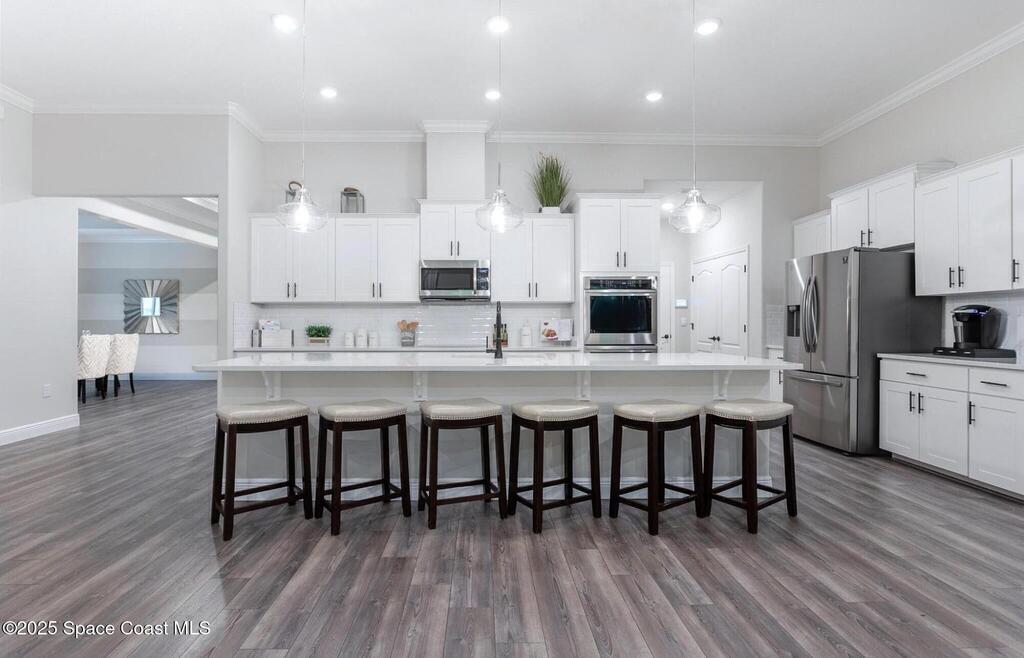 Ever wish you could live in the model home? Now is your chance! Never lived in with all the upgrades & ready for you to call it home!This contemporary & stunning Livorno model is a must-see home featuring timeless white cabinets & quartz countertops throughout an entertainers dream with huge dining room , wet bar & gourmet kitchen all seamlessly connected while still providing their own space. The Impressive 11-foot ceilings in this home exudes a spacious & open ambiance with wooded views looking out from great room & lanai.Among the many features , this property includes a massive primary bedroom that is a MUST SEE in person, two flex spaces a front den or 5th bedroom & a larger flex room perfect for a game room, additional entertaining area or formal dining room as shown in photos. The exterior features a stone veneer, inviting front porch & 3 car garage. The interior & exterior was updated with new paint, new flooring with new wood LVP & new upgraded carpet in 2022.