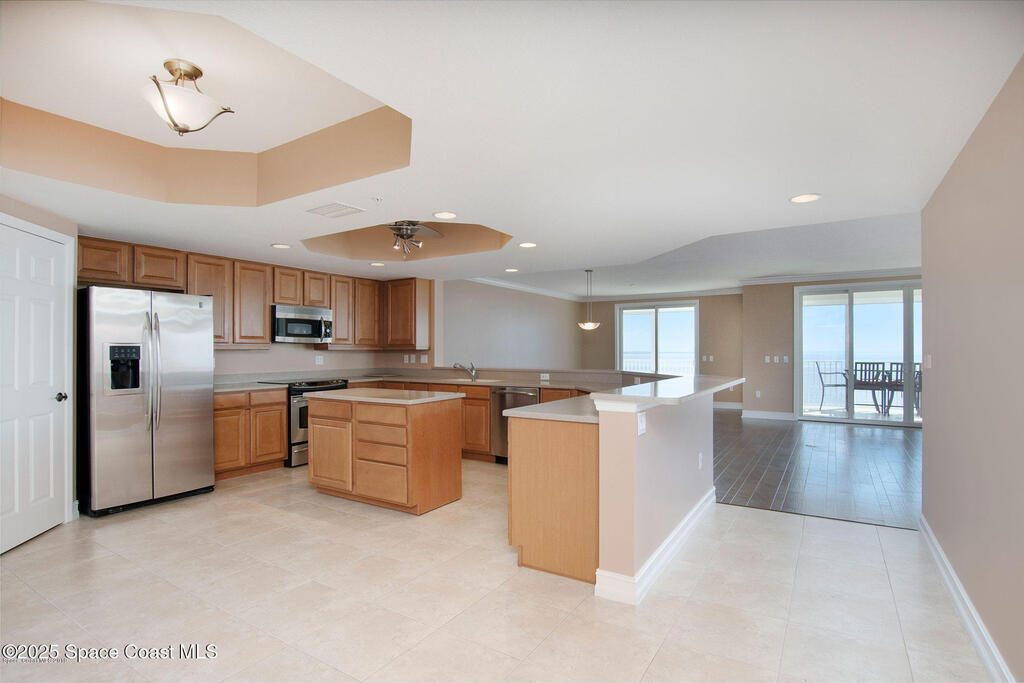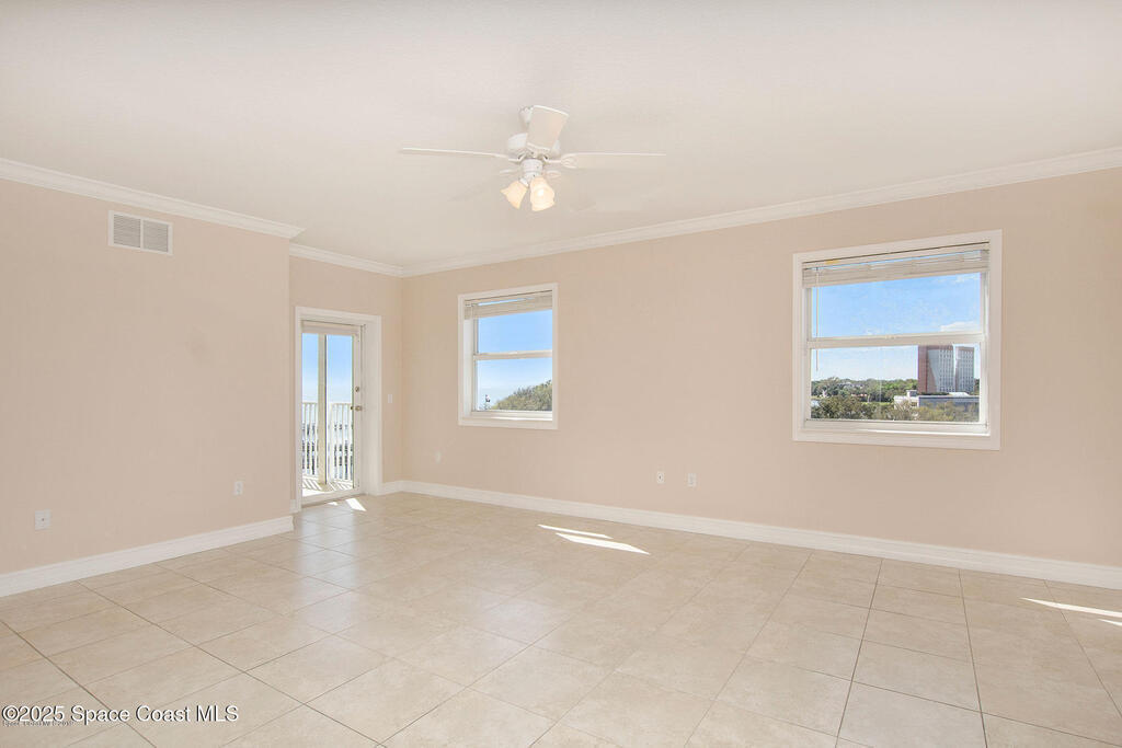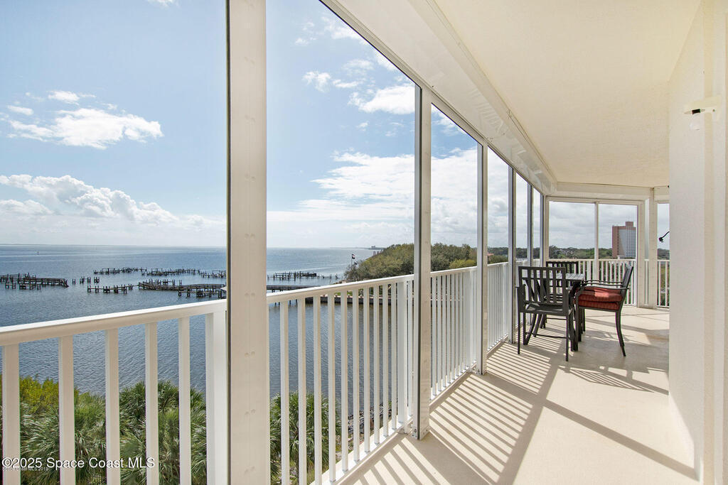 The immaculate corner unit condo has a view like no other. Situated on the south side of the building the wrap around balcony offers breath taking water views. Watch rocket launches from the comfort of your home and spend the evenings enjoying the breeze.