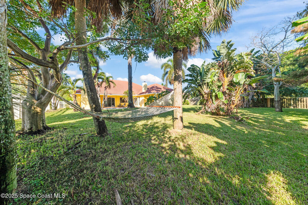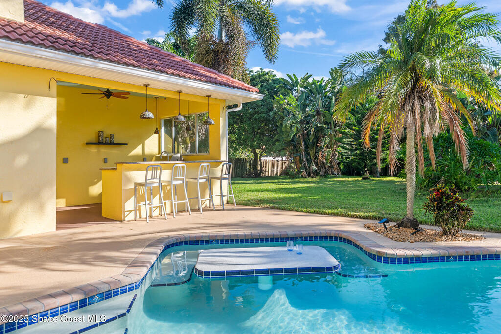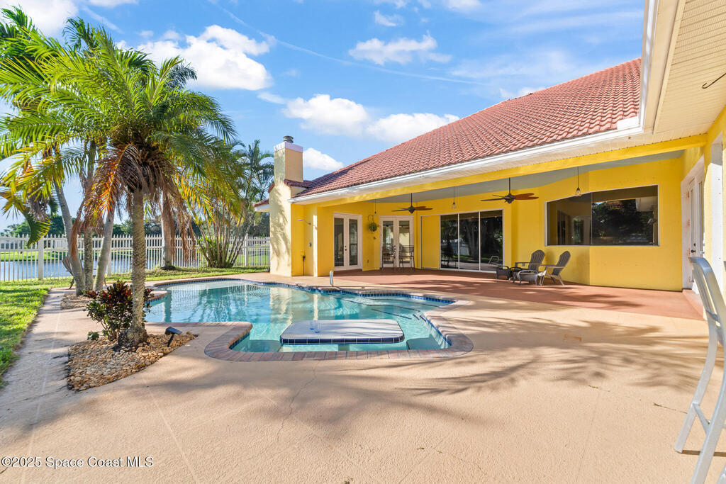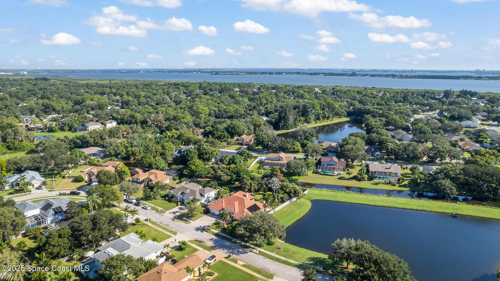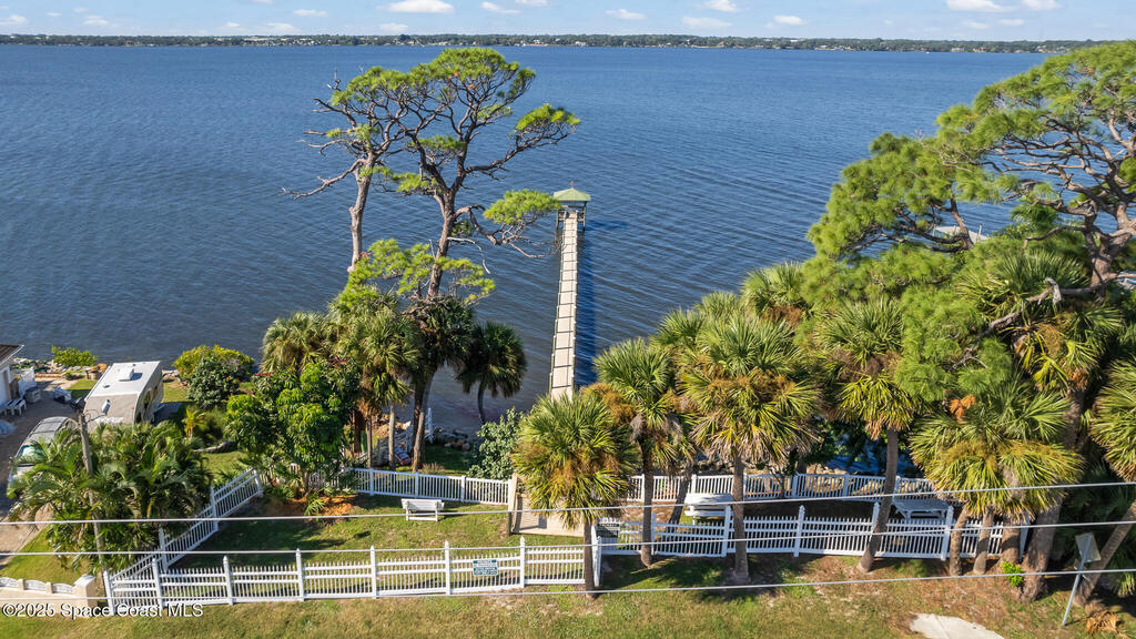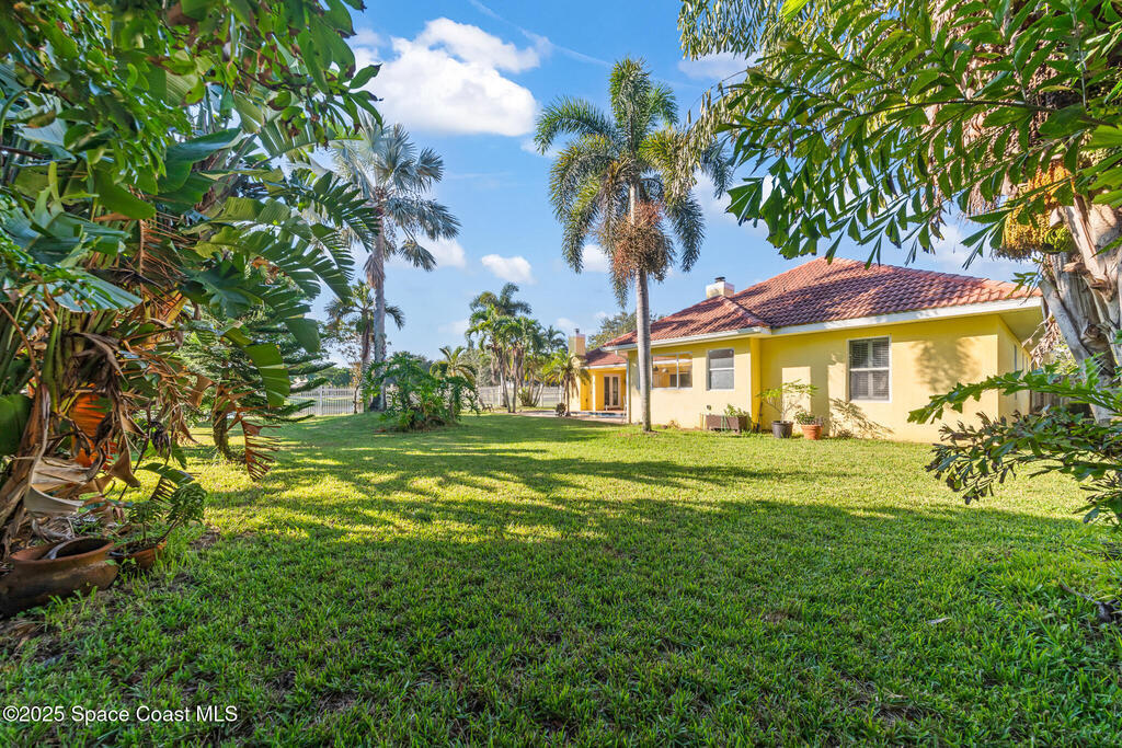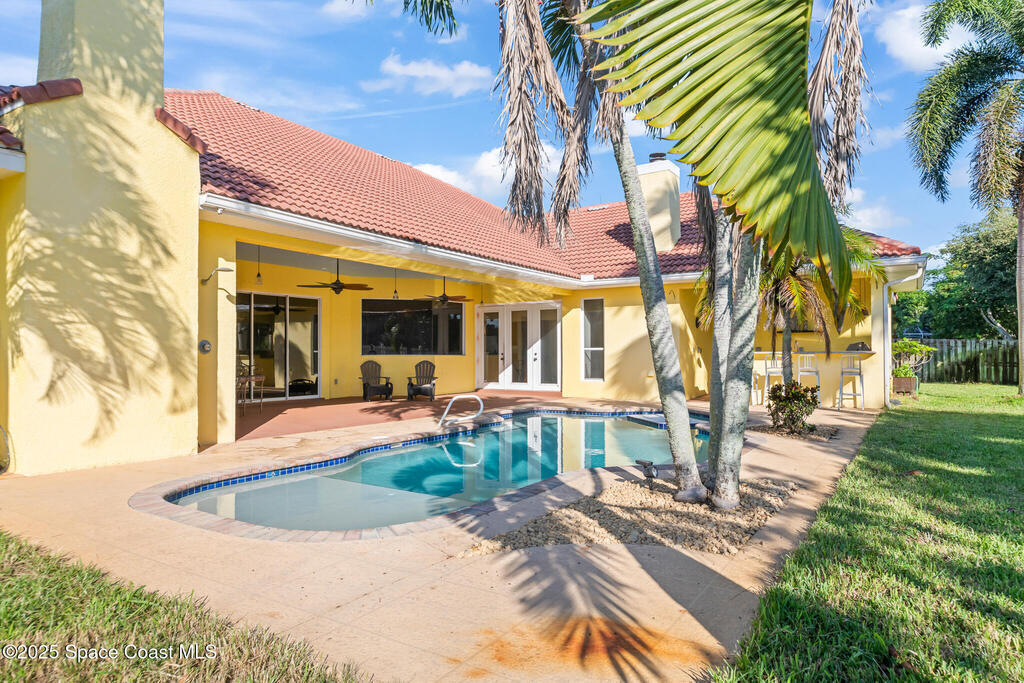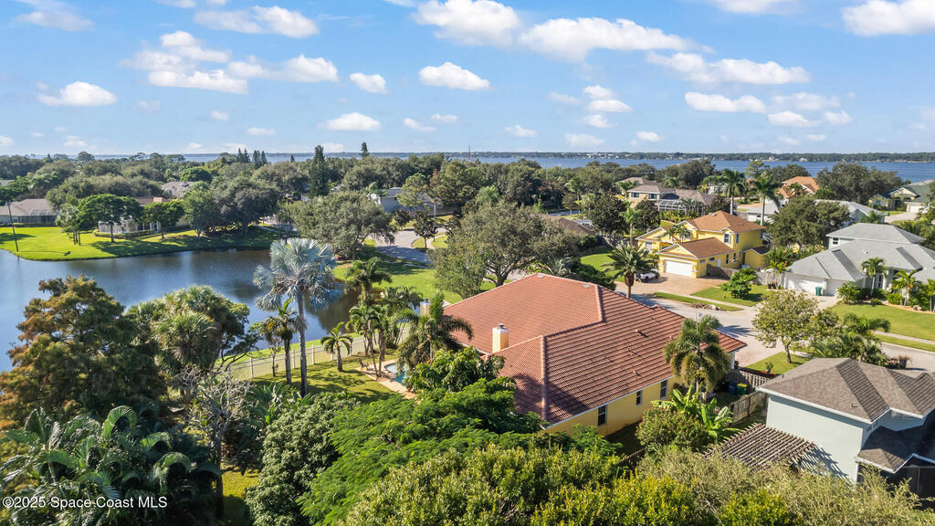 72 HOUR KICK OUT CLAUSE An exceptional opportunity to live in one of Merritt Island's most beloved neighborhoods.Originally built and owned by the developer of River Grove, this stunning single story lakefront home boasts quality and prime location. Featuring durable tile roof and a true master suite with private sitting area, wood floors, and charming fireplace, this residence exudes warmth, elegance and spaciousness. The large kitchen offers solid oak cabinets, granite countertops, built-in wine bar, and island perfect for entertaining. Set on an oversized fully fenced lot adjoining the serene neighborhood lake, the property includes multiple fruit trees. Enjoy outdoor living with grilling area, shower and swim-up table in the pool, resurfaced in 2019. A light filled family room with a second wood-burning fireplace completes this spacious home. Storm Shutters on premise. Yard is irrigated by well. Community Dock on the Indian River with Fishing Rights.