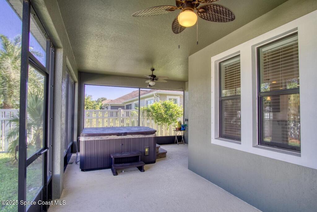 Immaculate 4-bedroom home with large kitchen, roomy primary en-suite with double vanities, soaking tub and walk in closets. You will also enjoy a large formal dining room and very large family room located off the kitchen. The screened lanai has a hot tub and plenty of room for furniture and decor of your liking. Durable vinyl flooring and for added convenience this property comes with washer and dryer which is located right off the kitchen. Granite counter tops, high ceilings and so much more.