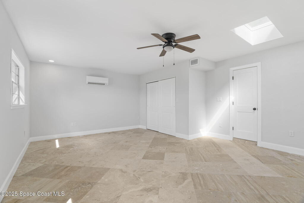 Completely remodeled from top to bottom, this beautifully updated 4-bedroom residence delivers. Every surface has been refreshed, every finish upgraded, creating a home that feels brand new yet instantly welcoming. Curb appeal with lush new sod, professional landscaping, and a freshly painted exterior. Solar panels (approx. 5 years), newer AC (5 years), and a 1-year-old water heater. The extended driveway and 1 car garage offer plenty of parking, while the upgraded irrigation system keeps the vibrant lawn picture-perfect year-round. Inside, you're greeted by a bright, open design filled with natural light from multiple skylights. The all-new tile flooring flows seamlessly through the living spaces, complementing soft neutral tones and updated fixtures. The kitchen shines with new countertops, stainless steel appliances, and hardware, while both bathrooms feature designer tile, new vanities, and modern lighting. The enormous 21 x 16'4'' master bedroom provides a true