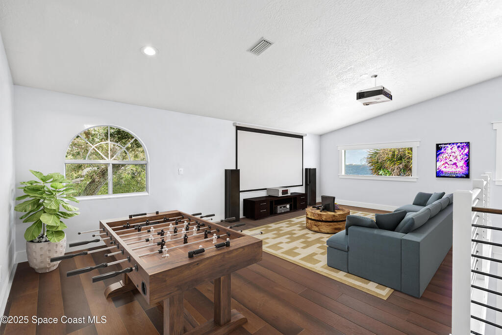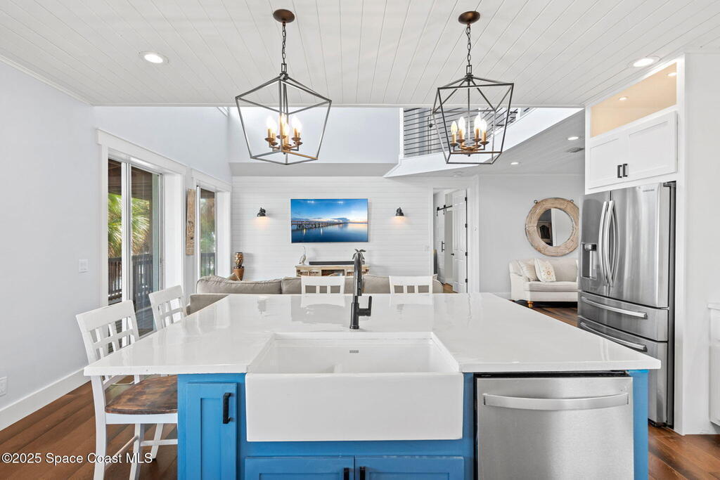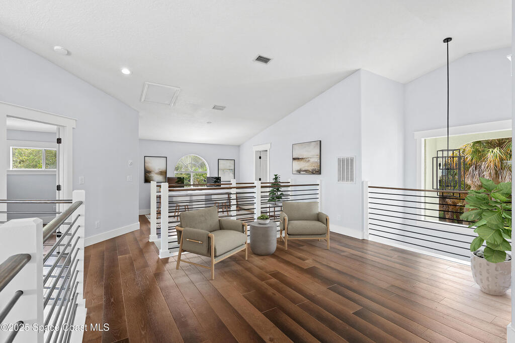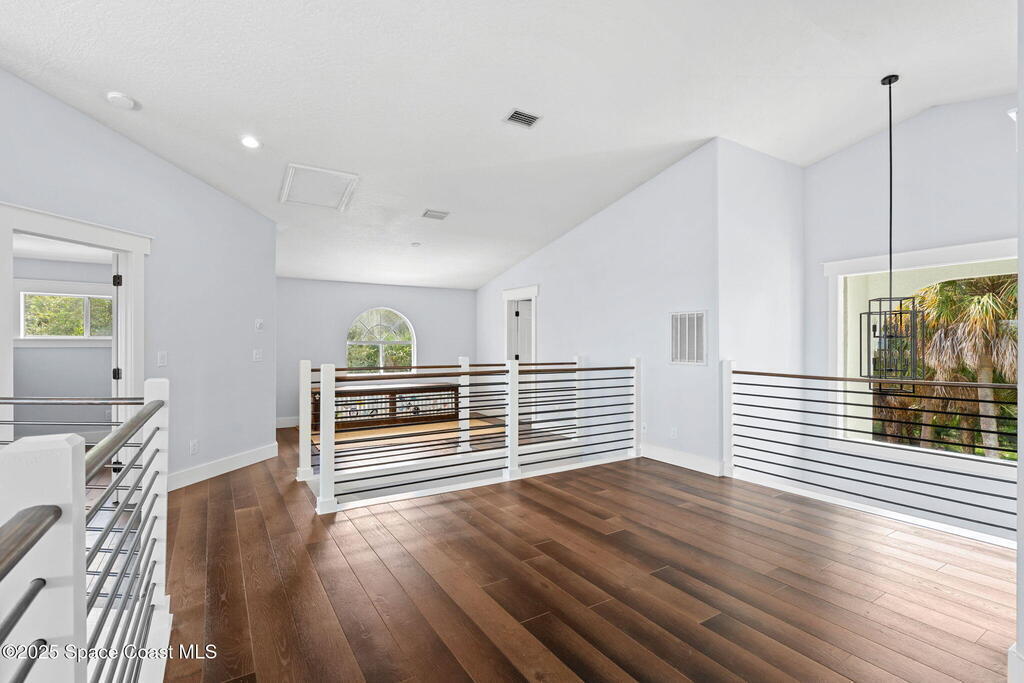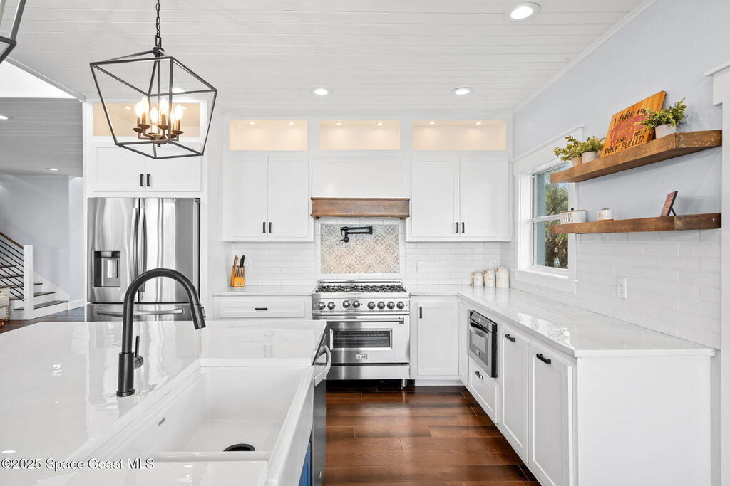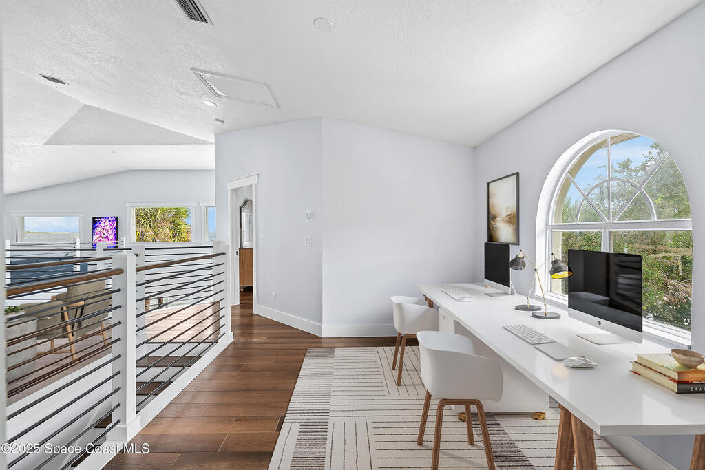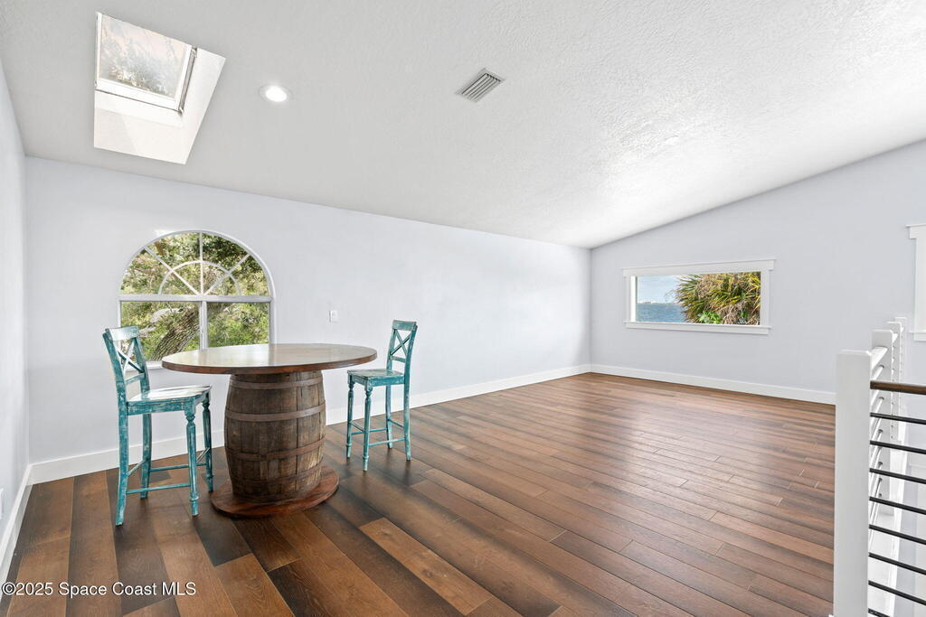 Welcome to your dream waterfront escape -- a beautifully remodeled three-story coastal chic home with endless views of the River. From the moment you arrive, you'll feel the serenity of lush palm trees, privacy, and the perfect blend of modern comfort and timeless Florida charm. Inside, the thoughtful layout maximizes both function and flow. The main living level features a spacious open concept with a master suite and an office or guest bedroom, perfectly positioned to capture the river breeze and incredible sunrise views. Below, a massive garage and unfinished workspace offer endless potential -- finish it under air to create an additional 500 sq. ft. of living space, ideal for a gym, recreation room, or social lounge. Upstairs, two more bedrooms and a full bath open to a private balcony overlooking the dock and boat lift -- your front-row seat to the river life. Morning coffee, evening cocktails, or spontaneous boat days -- it's all right outside your door.