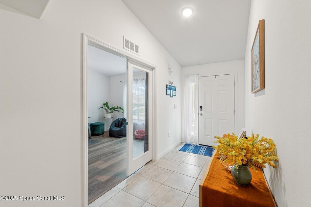 This extremely functional Capri floor plan by Avtec Homes is basically NEW. City water and sewer which is a HUGE BONUS in Palm Bay. Barely lived in and built at the end of 2021, this 3 bedroom PLUS an office is the perfect layout. This move in ready home is spacious, open, and has a big enough yard to accommodate a pool. Less than 10 minutes to Hammock Landing where you'll find tons of shopping and dining. No carpet.