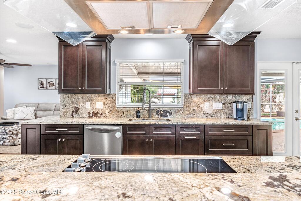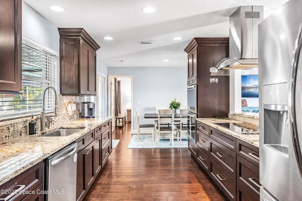 Villa De Palmas! Well appointed home fully remodeled Pool home featuring 4 bed/2 bath and a fenced in Private Yard Waterproof, stain resistant wood floors in the main living spaces and primary suite. HUGE kitchen has soft close, wood shaker cabinets, upgraded hardware, electric range overlooking the family room, double oven, granite countertops with matching backsplash, and more! Primary suite with double sinks and walk-in shower with decorative tile. Massive back yard, with brand new white vinyl privacy fence, and workshop w/ electricity and water. The oversized patio is perfect for gatherings and parties! Located close to Shopping, Beaches ,Golf and more!