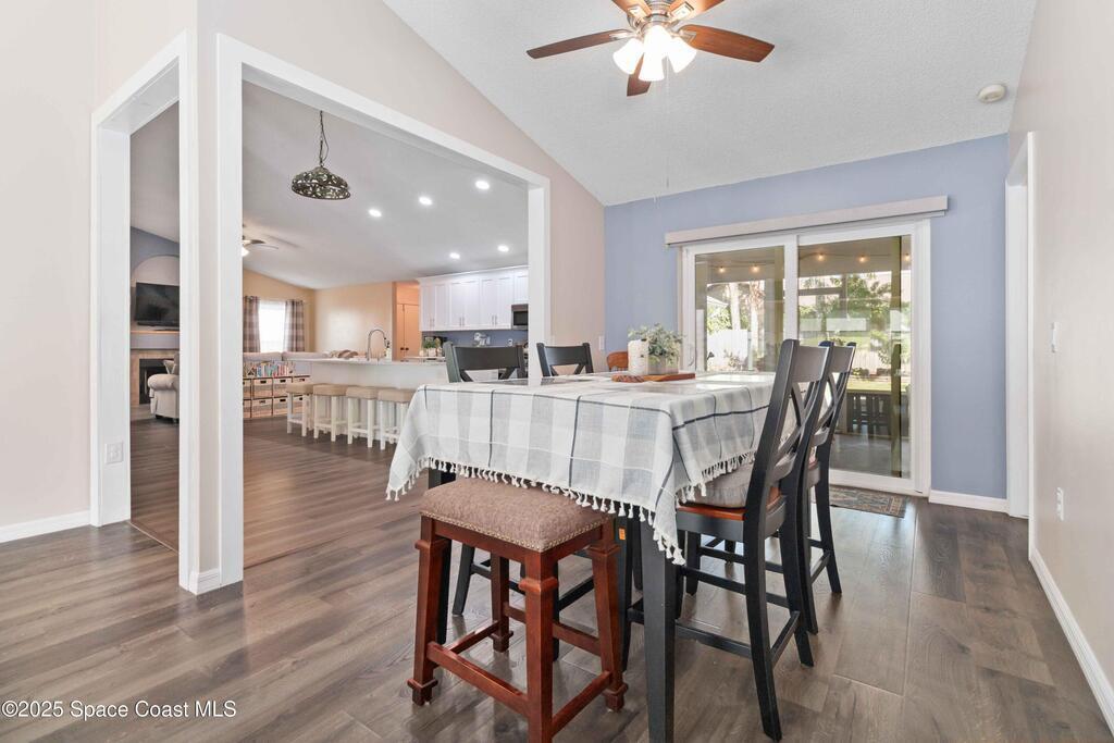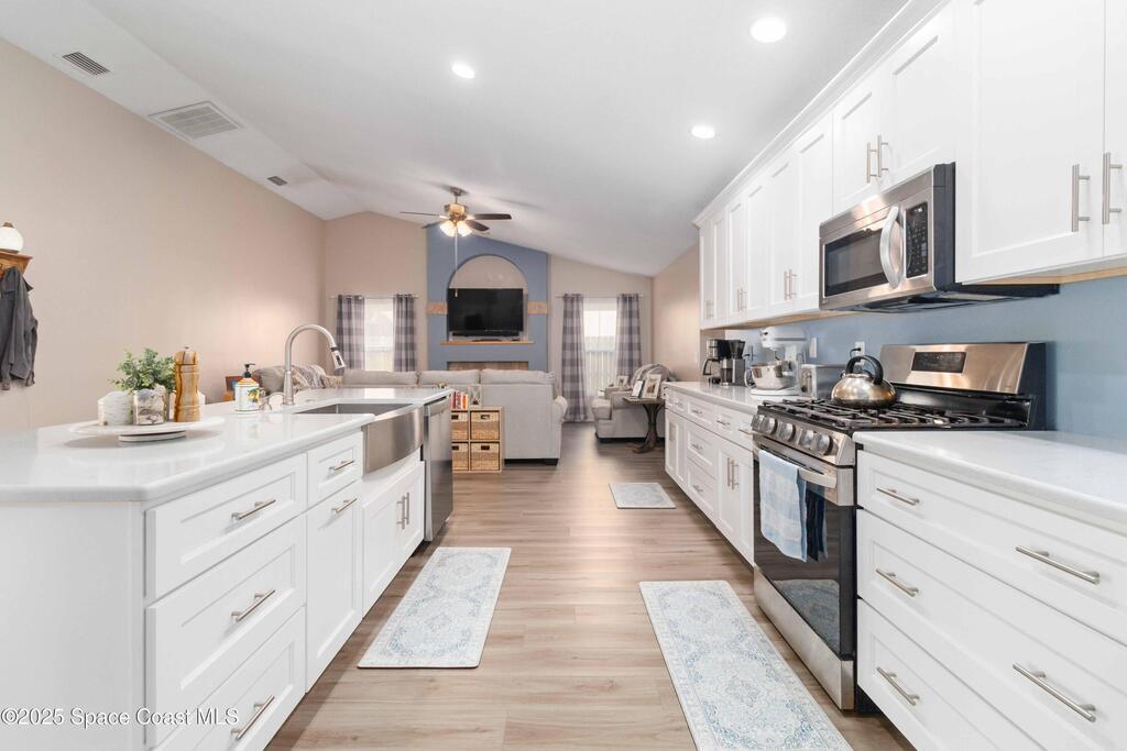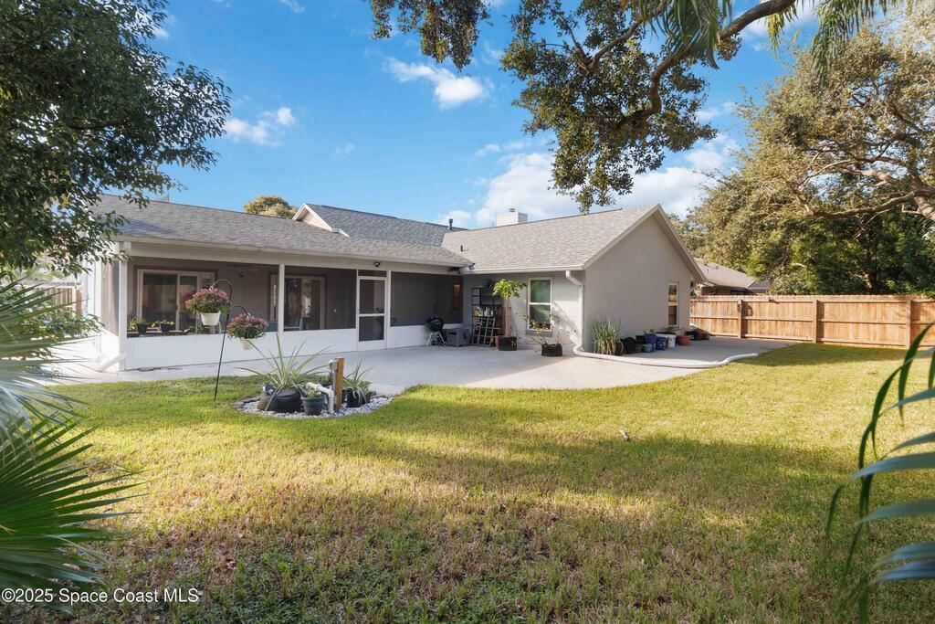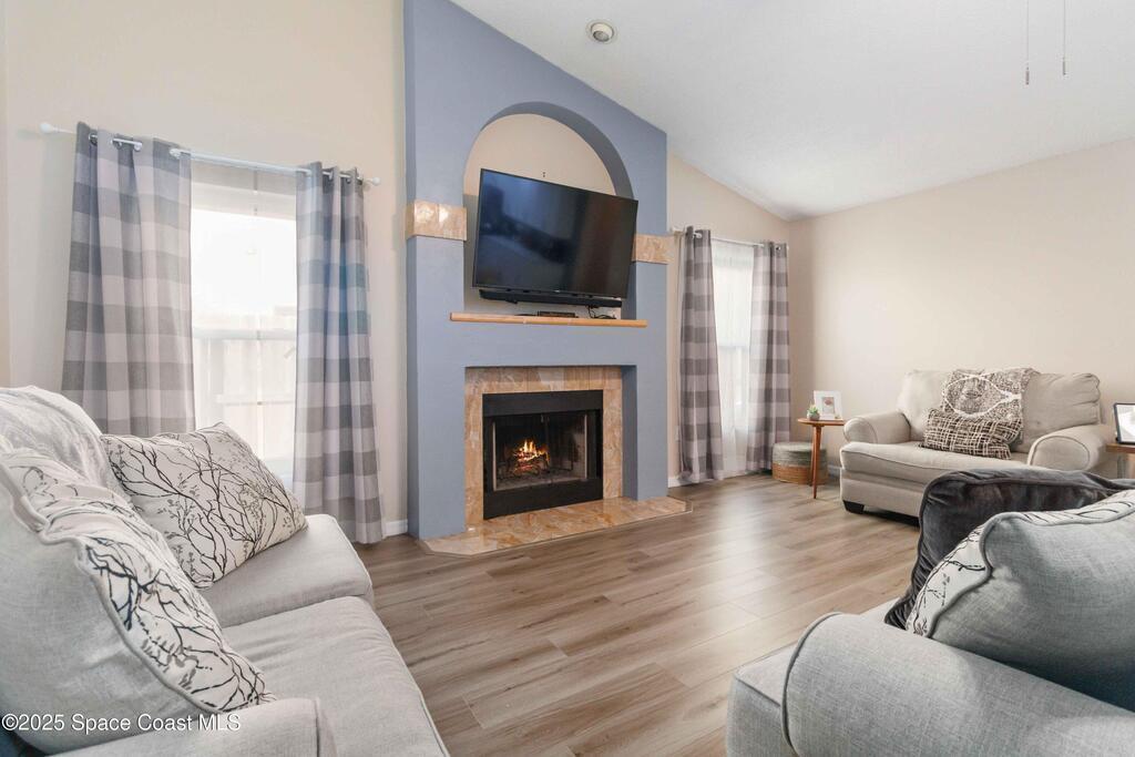 Welcome Home! This beautifully updated home in the sought-after La Cita community, blends modern finishes w/comfortable living spaces in this light & bright open floorplan. At the heart of the home, a spacious kitchen boasts quartz countertops, a large island w/breakfast bar, natural gas range & stainless steel appliances, perfect for everyday living or entertaining. Just off the kitchen sits the family room boasting a cozy, wood-burning fireplace, creating a warm & welcoming space to gather. The primary suite offers a peaceful retreat w/walk-in closet & ensuite bath featuring a double vanity & walk-in shower. New luxury vinyl plank flooring, no carpet! Spacious screened patio overlooks the large fenced yard, ideal for entertaining family & friends. High speed fiber internet is available. 2 car garage. Conveniently located near shopping, dining, less than 20 min to Kennedy Space Center, SpaceX, Blue Origin, 30 min to beach, 40 min to Orlando airport & area attractions!