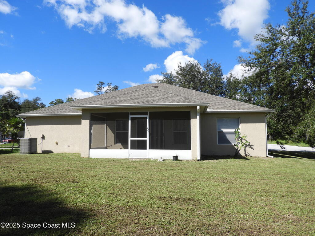 SPACIOUS AND BEAUTIFULLY UPDATED 3 BEDROOM, 2 BATH HOME! ENTER INTO THE FORMAL LIVING AND DINING ROOMS THAT FLOW INTO THE LARGE KITCHEN WITH BREAKFAST BAR SEATING OVERLOOKING THE FAMILY ROOM -- PERFECT FOR ENTERTAINING FAMILY AND FRIENDS. THE SPLIT BEDROOM PLAN FEATURES GENEROUS SIZED ROOMS, AND THE PRIMARY SUITE OFFERS A DOUBLE SINK VANITY, SOAKING TUB AND WALK-IN SHOWER. ENJOY THE CONVENIENCE OF AN INDOOR LAUNDRY ROOM, FRESH INTERIOR PAINT, BRAND NEW TILE FLOORING THROUGHOUT, AND NEW APPLIANCES. RELAX ON THE SCREENED PORCH OVERLOOKING THE LARGE YARD ON AN OVERSIZED CORNER LOT WITH CITY WATER. LOCATED IN DESIRABLE NORTHWEST PALM BAY, CLOSE TO SHOPPING, RESTAURANTS, BANKING, AND I-95 ACCESS. ONE PET UNDER 40 LBS PERMITTED WITH VET RECORDS AND A $350 NON-REFUNDABLE PET DEPOSIT.