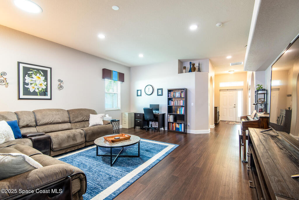 Discover your slice of paradise in Palm Bay, FL--a thriving Space Coast gem where pristine beaches, the serene Indian River Lagoon, and Melbourne's vibrant dining scene await. This immaculate townhome sits on a pie-shaped lot open to the back offers extra privacy and comfort beyond most in the neighborhood--it's a true turn-key treasure, lovingly updated for effortless living. Flooded with natural light from solar tubes in the kitchen and great room, luxury vinyl plank flooring in main areas, fresh paint throughout, and plush new carpets. The heart of the home boasts an updated kitchen with sleek backsplash, single-basin sink, premium fixtures, sink disposal, and stainless appliances (refrigerator, stove, microwave, dishwasher, washer, dryer). Retreat to the updated master bedroom and bath, with a beautifully remodeled shower and new vinyl flooring. Upgraded patio with new vinyl windows and tiled floors. Peace of mind includes a new roof, AC, water heater, and impact windows!
