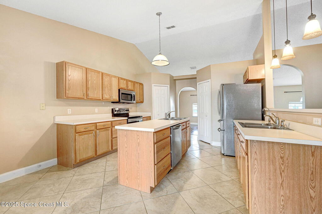 Investors Dream Needs roof replacement . This Three Bedroom Two Bathroom Two Car garage home is situated in a quiet area with easy access to the new Heritage Parkway And Palm Bay Shopping Areas. The Home Features A modern kitchen design with plenty of counterspace and a second Island, Durable wood laminate flooring and Ceiling Fans. The master bath features a walk-in shower, soaking tub and private water closet. The rear covered screened lanai stands out offering an inviting space to enjoy the outdoors. AC Replaced on 8/22 Vinyl Privacy Fenced Backyard and much much more.