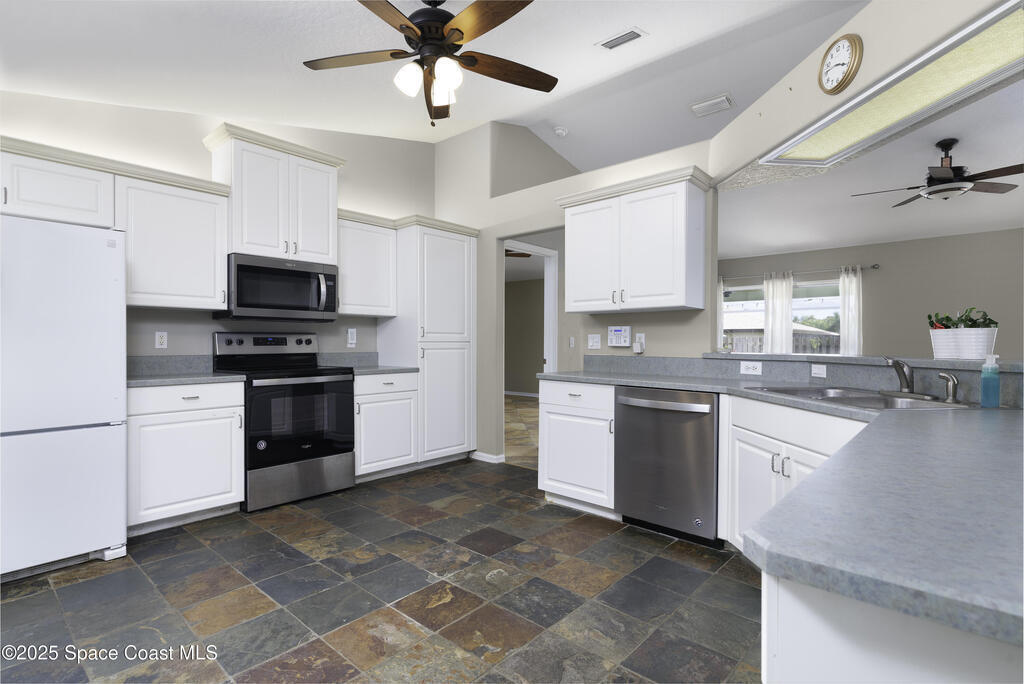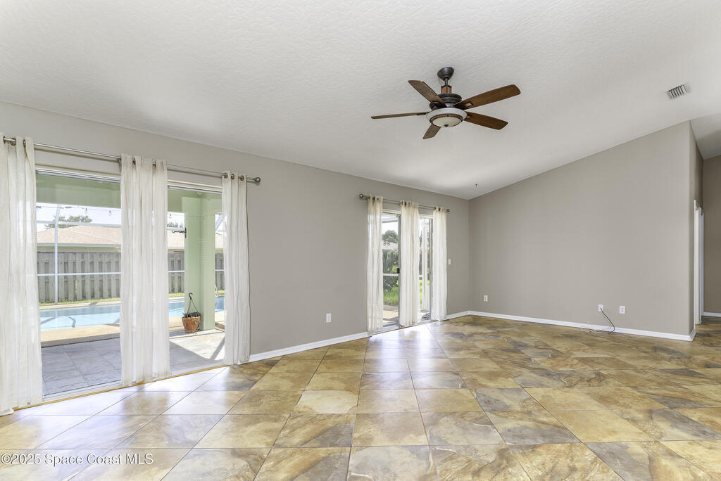 Discover comfort, convenience, and Florida living at its best in this 3 bed 2 bath pool home nestled in the gated community of Forest Creek. Enjoy your own private oasis featuring a screen enclosed electrically heated pool and a spacious covered trussed patio that is perfect for entertaining or relaxing year round. The EPDM pour in place rubber pool deck provides a safe, non slip, and cushioned surface ideal for play and peace of mind. Inside you'll find vaulted ceilings that enhance the home's open feel, large kitchen with ample cabinetry and counter space, with slate, wood, and tile flooring throughout. The fenced backyard adds privacy and space for pets or outdoor fun. Enjoy the best of Melbourne living with Southwest Park, Pieloch dog park, shopping, restaurants, places of worship, downtown Melbourne, and the beach all just minutes away. Bring your personal touch and make this well loved home your own, offering a great combination of location, comfort, and potential.