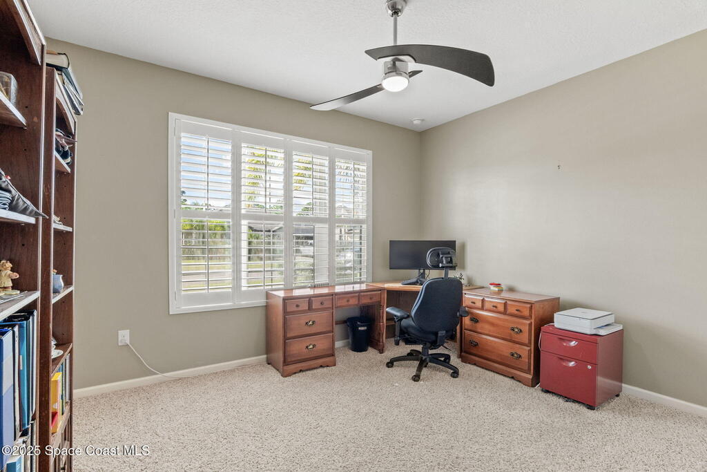 Welcome to The Sanctuary at Sawgrass Lakes--West Melbourne's premier gated enclave. This stunning lakefront 4-bedroom, 3-bath, 3-car garage home was built in 2019 and feels better than new. Inside, you'll find a designer kitchen with a peninsula breakfast bar, secondary island, granite countertops, 42'' white cabinets with crown molding, stainless appliances, and a walk-in pantry. Elegant upgrades include tray ceilings, plantation shutters, electric lanai blinds, and custom laundry cabinetry. Enjoy sunsets from the screened patio overlooking the lake and fully fenced backyard with private irrigation well and brick-paver entertaining area. Resort-style amenities include a clubhouse, fitness center, tennis and pickleball courts, playground, and the community's signature water park. Centrally located near top schools, shopping, dining, I-95, and the beach--this is the lifestyle you've been waiting for.