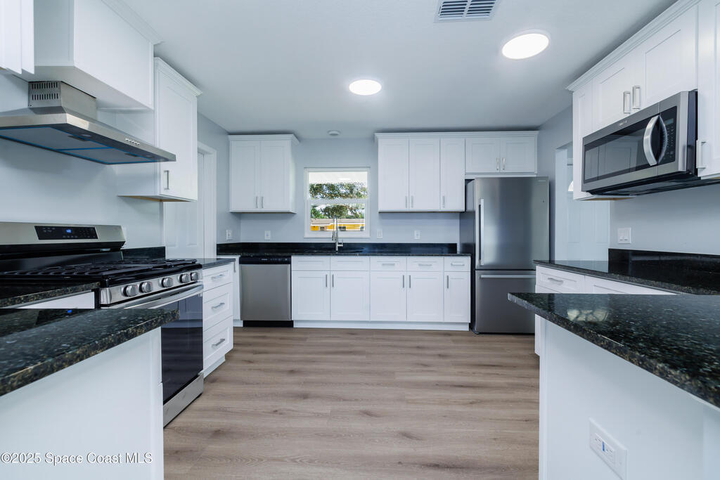 Experience modern living in this stunningly remodeled 3-bedroom, 2-full-bath home in Cocoa. The heart of the home is the kitchen, featuring granite countertops, all new appliances, including a natural gas range and stove, along with soft-close cabinets and drawers for a touch of elegance. Enjoy the seamless flow of new LVP flooring throughout the main living areas, while the bedrooms offer cozy, brand new carpeting.This home has been updated with brand new impact windows, ensuring energy efficiency and storm protection, plus all-new plumbing and doors! It's perfectly located within walking distance to schools, and just a 5-minute drive to a variety of shopping and dining options.Commuting and travel are a breeze with easy access to FL-528, providing a quick route to Orlando Int. Airport, area beaches, and the cruise port at Port Canaveral. A bonus feature is the 24x12 shed in the backyard, equipped with power, ideal for storage or hobbies. *One or more photos virtually staged.